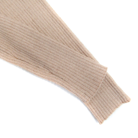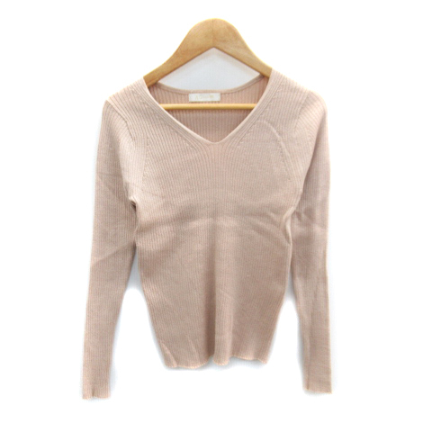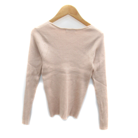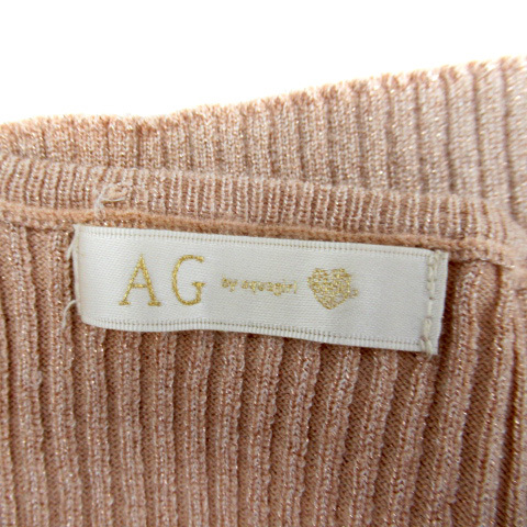 エージーバイアクアガール AG by aquagirl リブニット カットソー 長袖 Vネック 無地 ラメ S ピンクベージュ /SY42 ■MO レディース