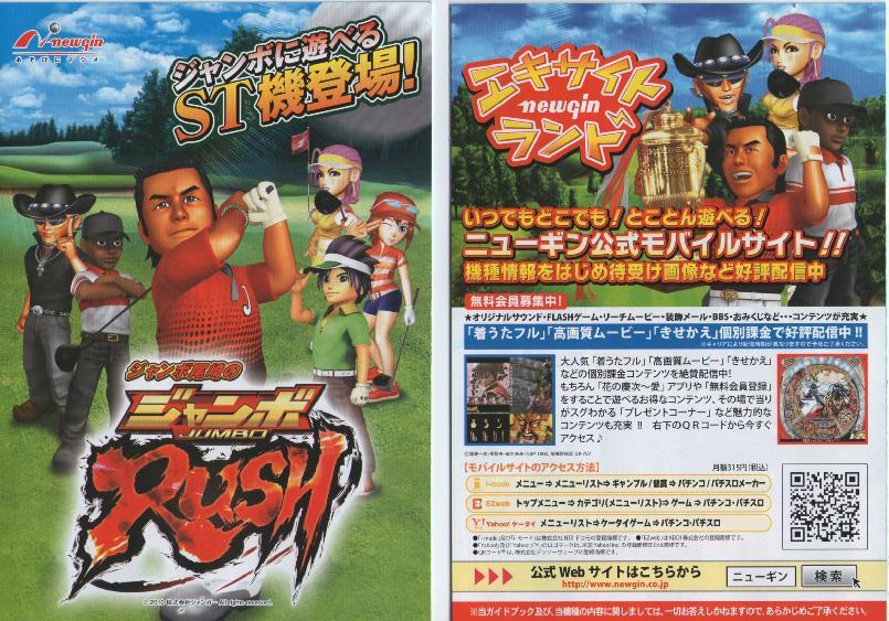 ニューギン(newgin)の2011年導入のパチンコ台「CRジャンボ尾崎のジャンボRUSH(CRジャンボRUSH N-K/N-KG)」の無料配布小冊子です。
