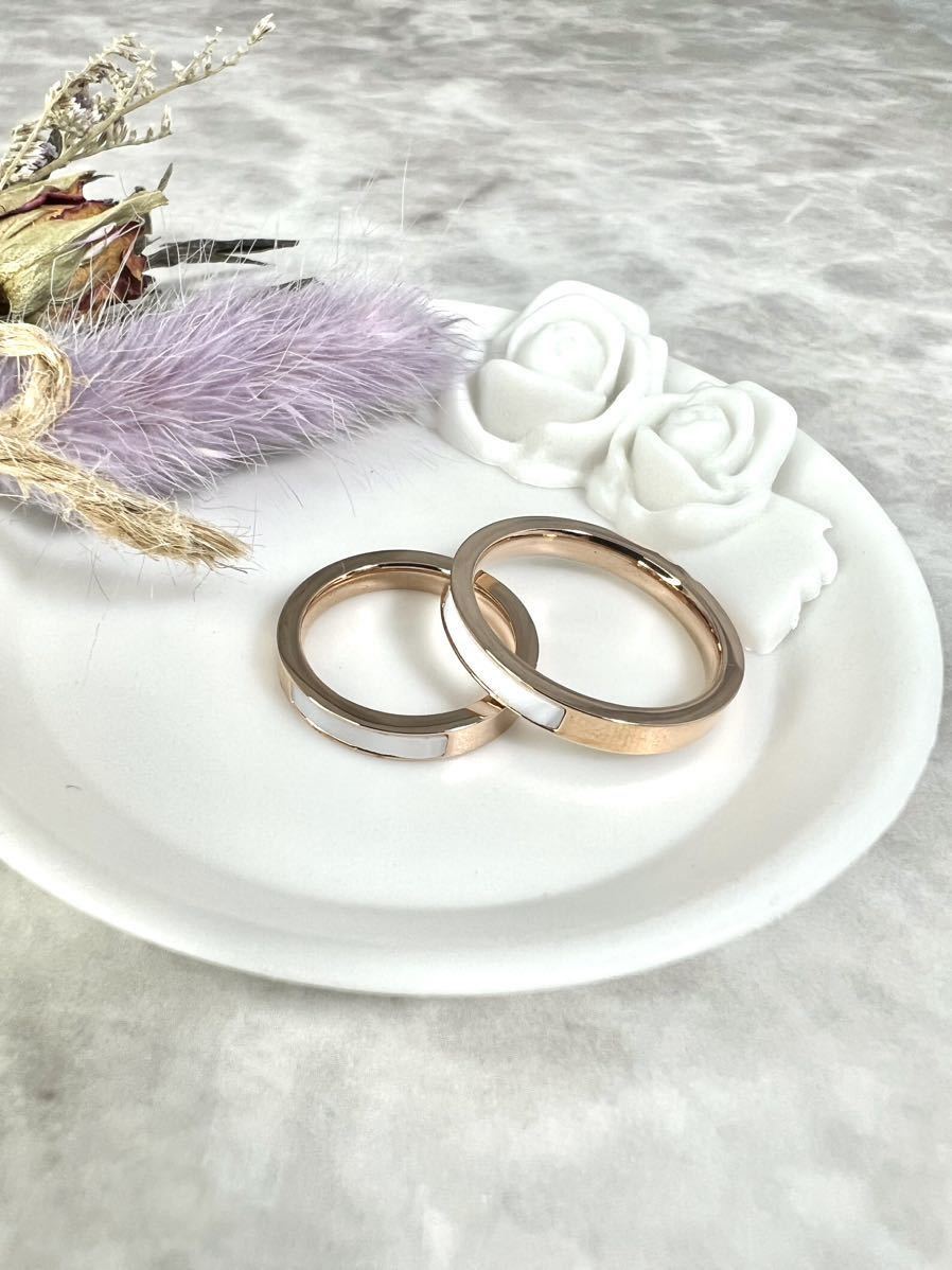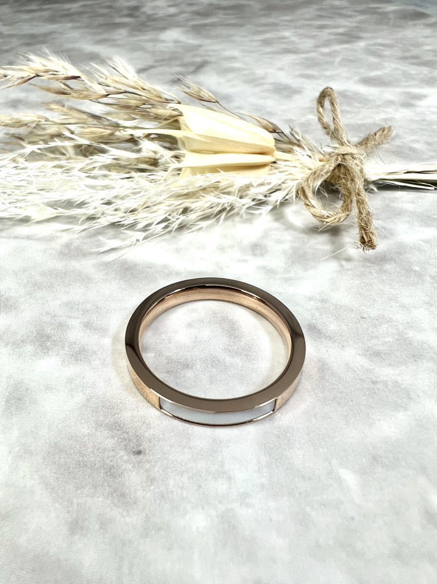 指輪 14号サージカルステンレス リング 光沢 ピンクゴールド 白蝶貝 メンズ レディース プレゼント シンプル アレルギーOK
