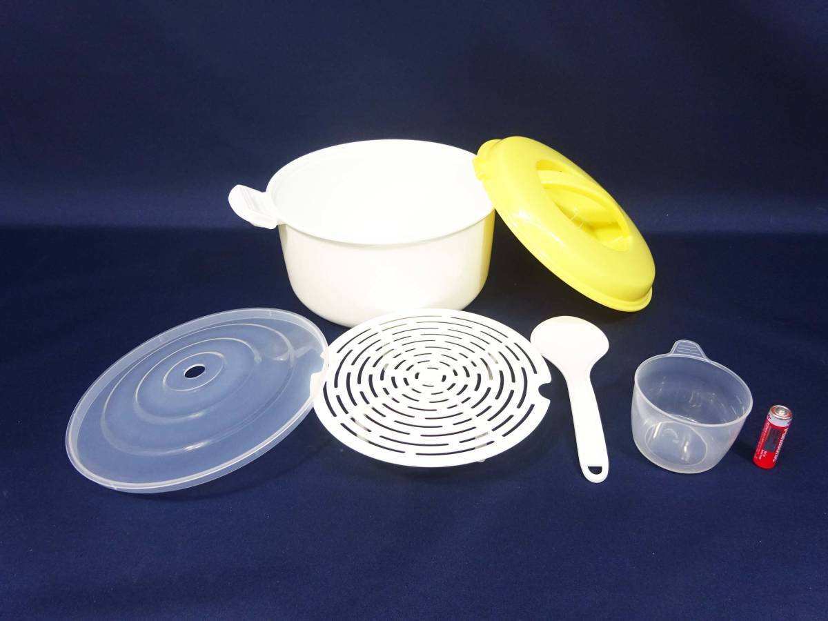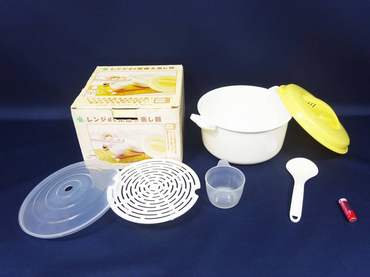 ◆(TH) レンジde炊飯&蒸し器 外ふた 中ふた すのこ 炊飯器 計量カップ しゃもじ レンジ調理専用 蒸し料理 調理器具 キッチン雑貨