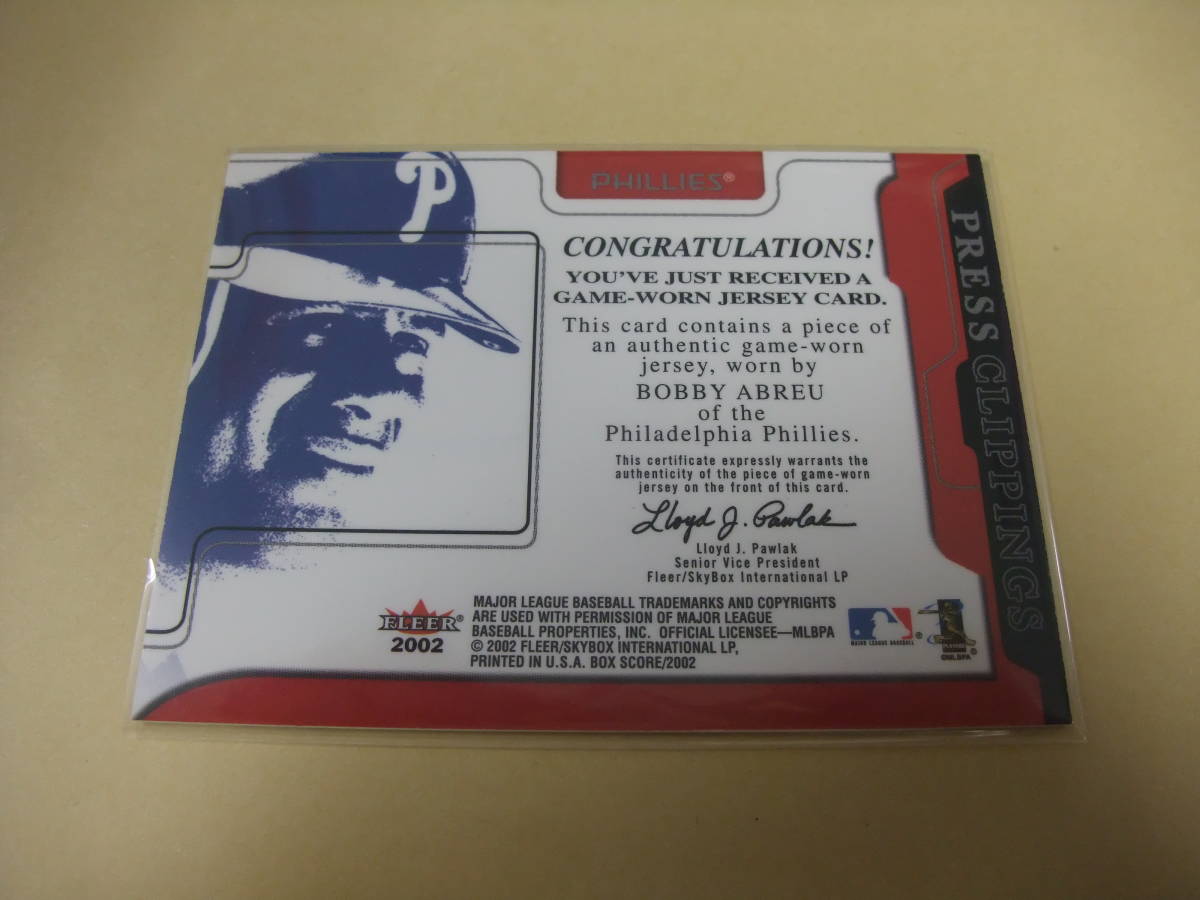 2002 FLEER BOXSCORE BOBBY ABREU ボビー・アブレイユ ジャージカード カード MLB