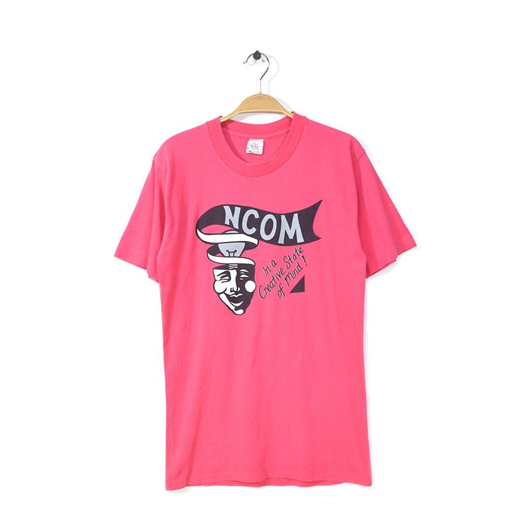 80s NCOM USA製 ヴィンテージTシャツ ピンク 袖裾シングル BELTON アメカジ サイズM 古着 @BZ0113