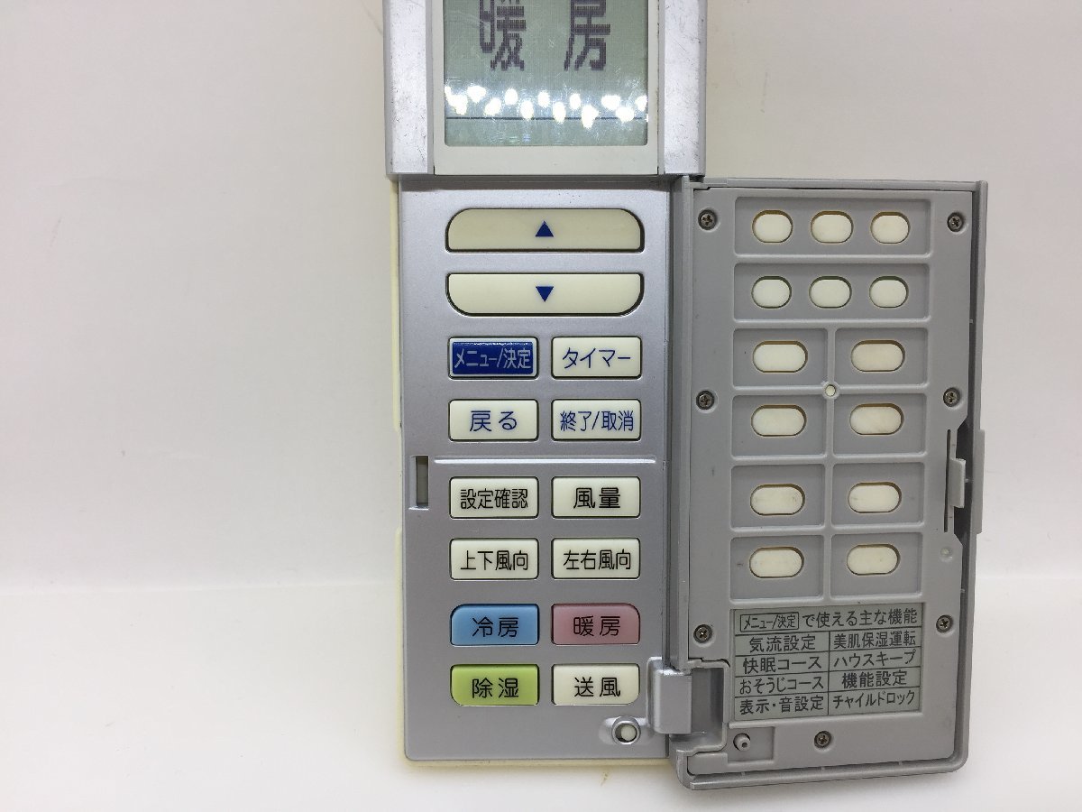 (エアコンリモコンの場合、正面からだとディスプレイ表示が薄い仕様のものもございます。不具合ではございません。)