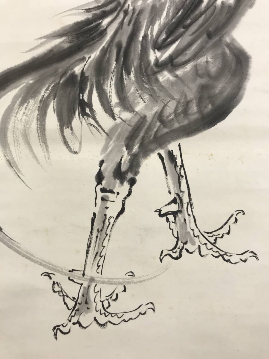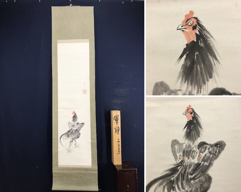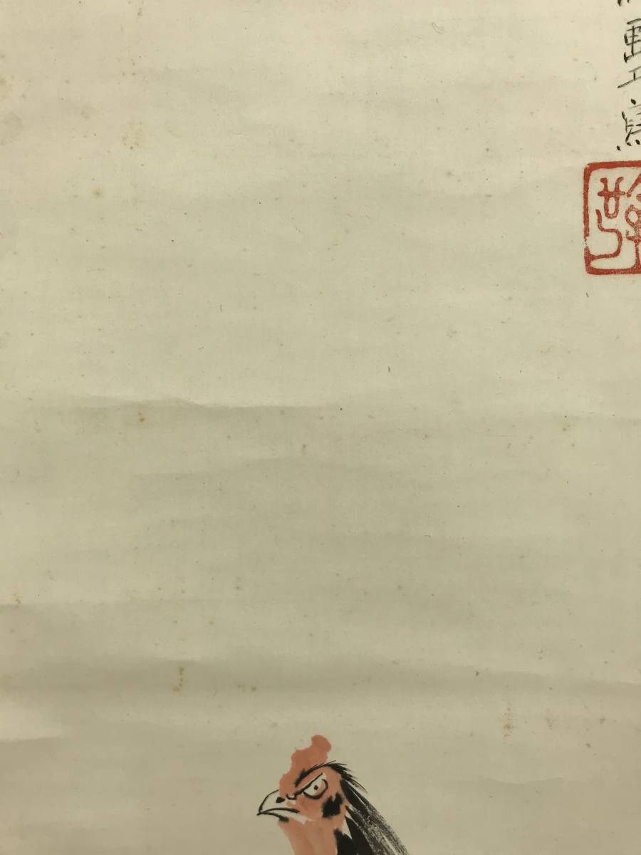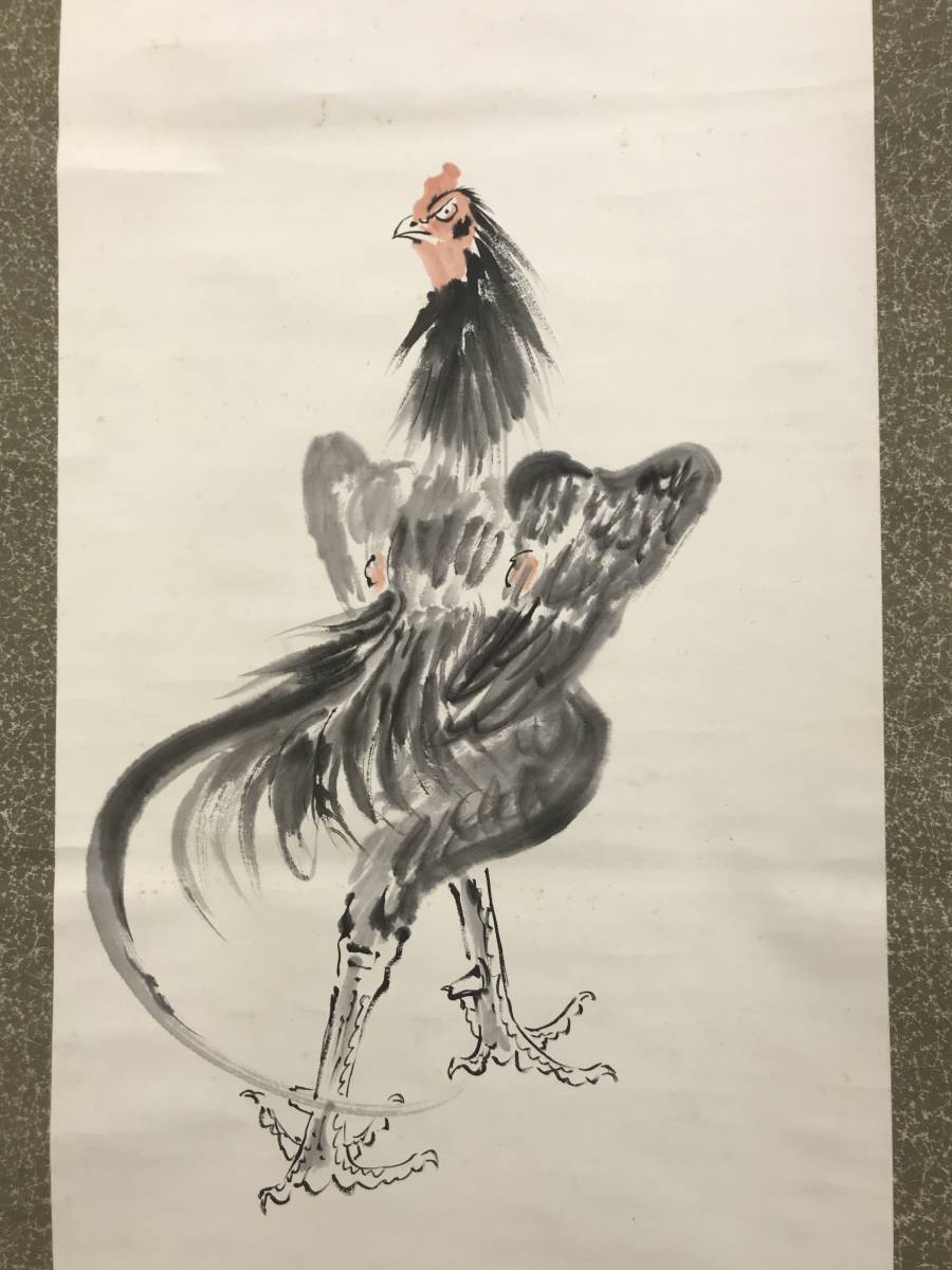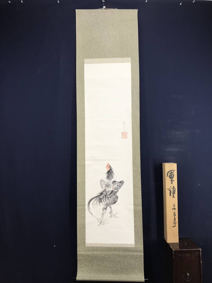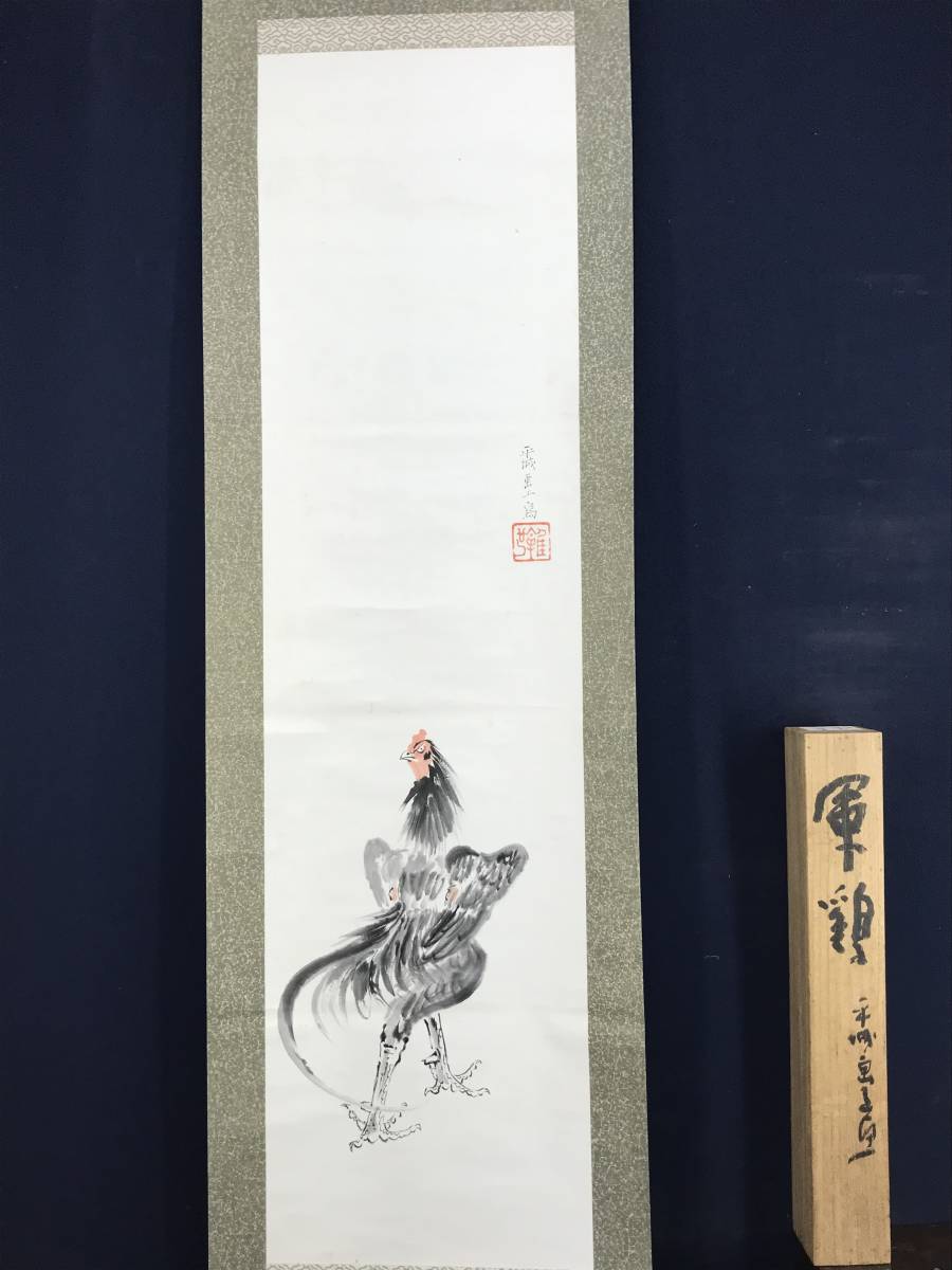 真作/山下繁雄/軍鶏図/シャモ図/花鳥図//掛軸☆宝船☆AD-188