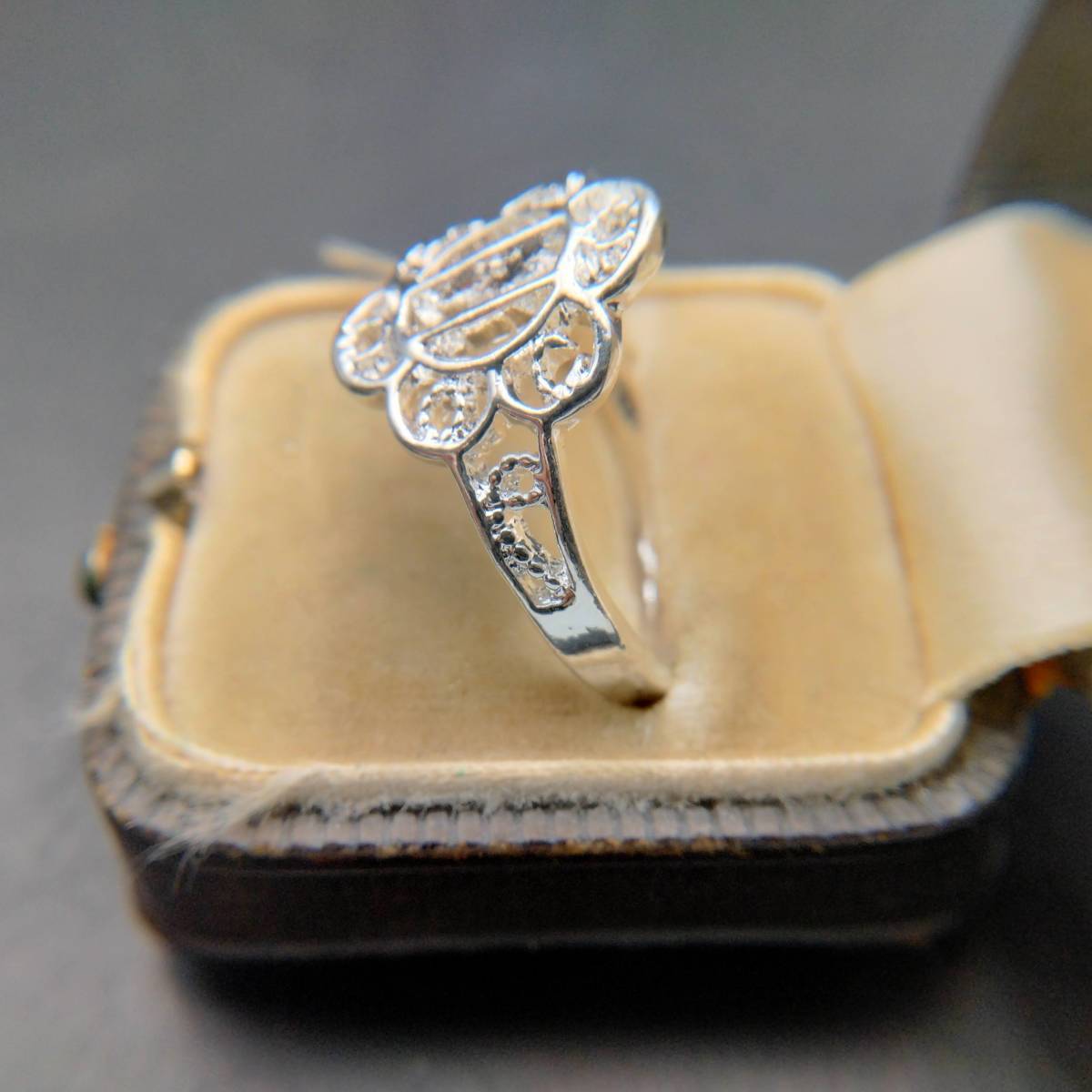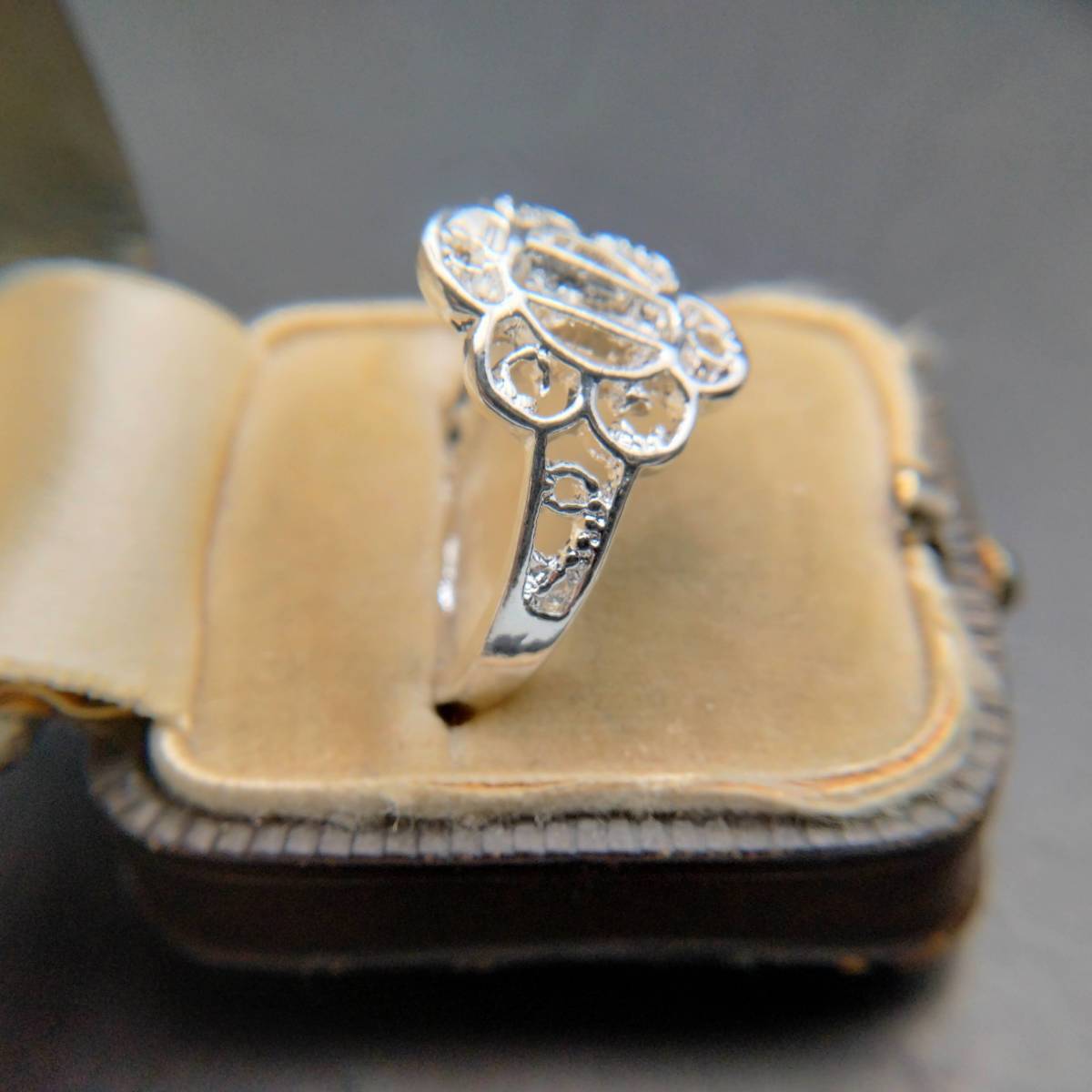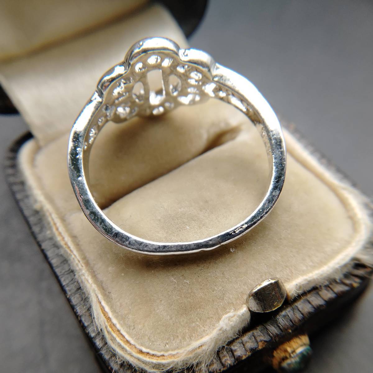 メタル フラワー モチーフ 透かし 925 ビンテージ シルバー リング 指輪 昭和レトロ コスチューム ジュエリー 輸入 9S-B