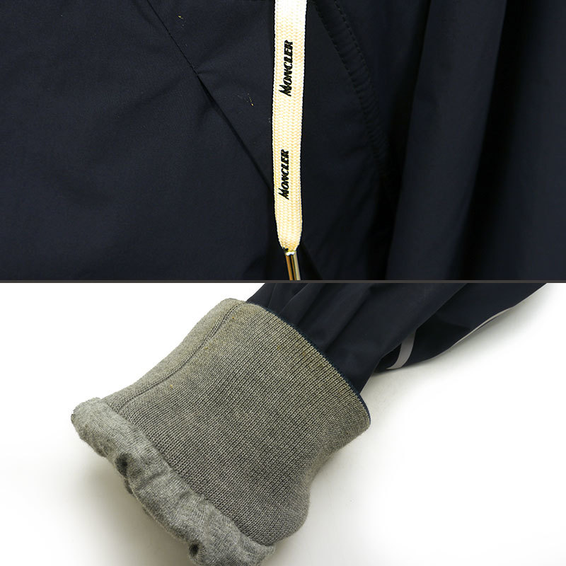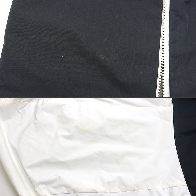 ・ネイビー部分は所々に白い汚れ、白部分は黄色い汚れ有り。片方の紐に黄ばみ、袖に汚れや毛玉有り。全体的に使用感があります。