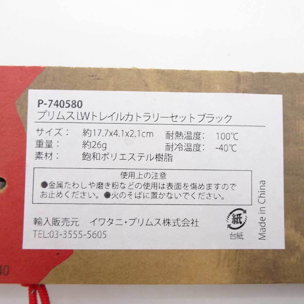 ※商品は画像にあるものがすべてとなります。 【仕様】 タイプ:LWトレイルカトラリーセット 型番:P-740580 重量:約26g カラー:ブラック サイズ:約17.7×4.1×2.1cm 材質:飽和ポリエステル樹脂 詳細備考:耐熱温度:100℃ 耐冷温度:-40℃ |