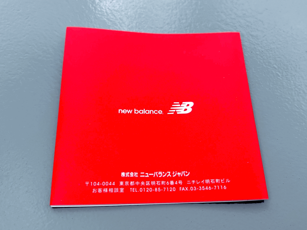 赤タグ、日本語取扱説明書の付くニューバランスジャパン販売の国内正規品です。