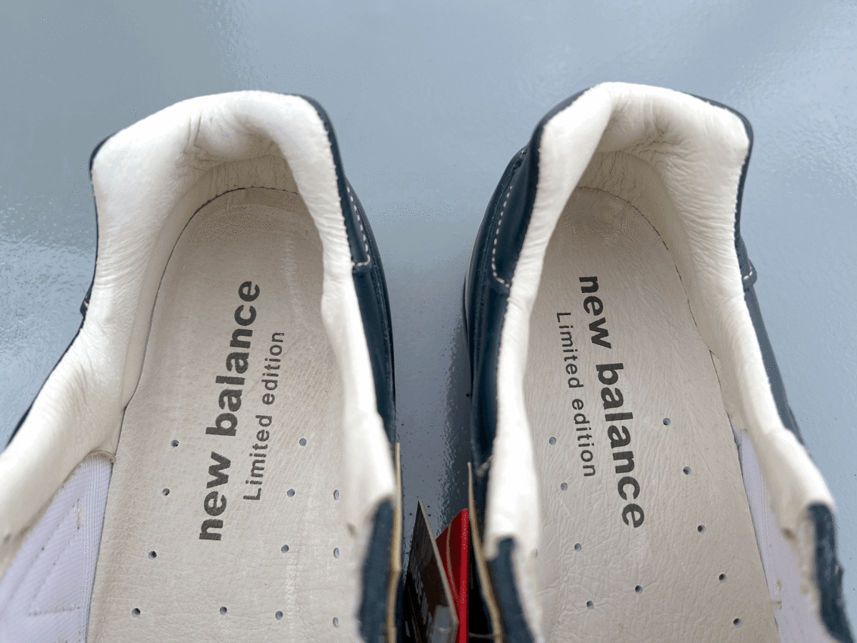「new balance Limited edition」と金字入りのレザーインソールは手入れが簡単で耐摩耗に優れます。