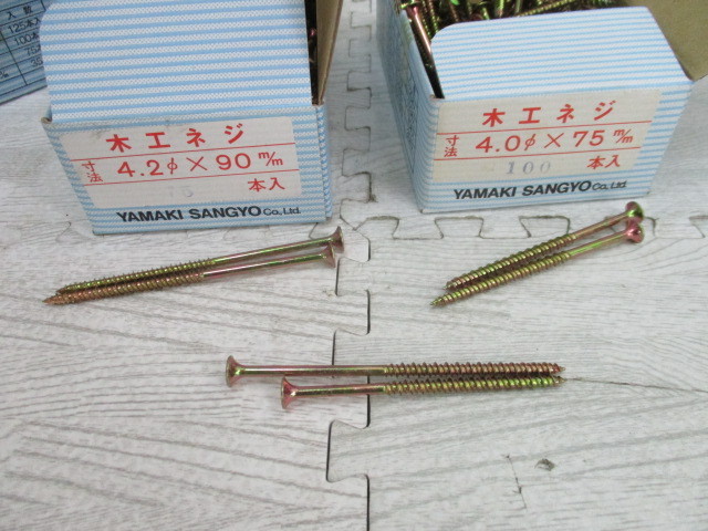★木工ネジ 4.2×90mm 4.0×75mm 各2箱 計4箱★ 2種類です。サイズは4.2×90mm 4.0×75mmとなります。 いずれも未使用で未開封 (ただし撮影の為開封 本数も確認済) ◎到着後商品についてクレーム等が有った場合は評価を変更させていただく場合がございますのでご注意下さい。 ◎新品や完品をお求めの方・神経質な方の入札はお控えください。クレームは受け付けません。 ◎中古のお品場合は十分ご理解をいただいうえで入札をお願いします。 ◎当社のオークションは返品・交換・キャンセル等は一切お断りさせて頂いております。充分ご検討の上ご入札下さいませ。 | |