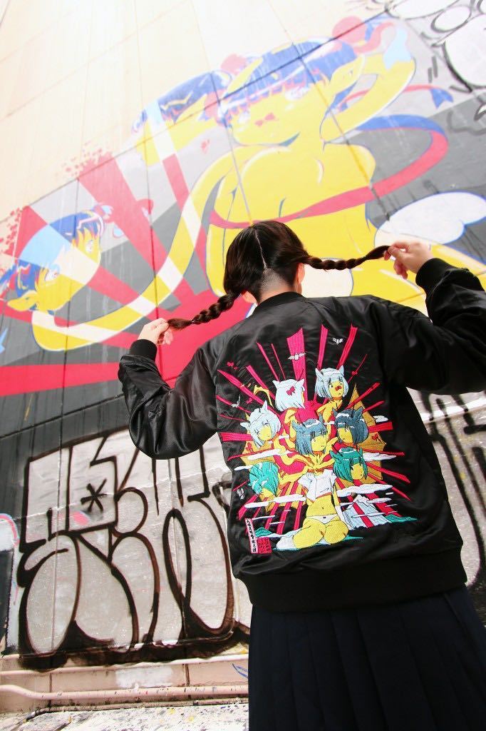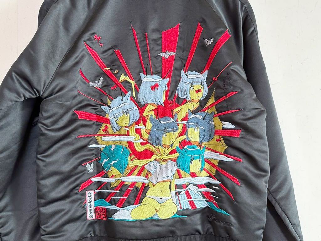 「嫌われない程度に愛されたい女流美術家」愛☆まどんなのヴィレッジヴァンガードにて数量限定販売!!! 表のバックには「八岐大蛇愛娘之図」の刺繍。裏はリバーシプルでオールブラック、ポケットに描き下ろしタグ付き!