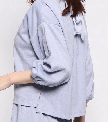 新品 earth music&ecology バックリボン プルオーバー スウェット カットソー 7分袖 トップス ぽわん袖