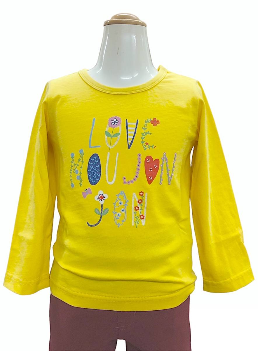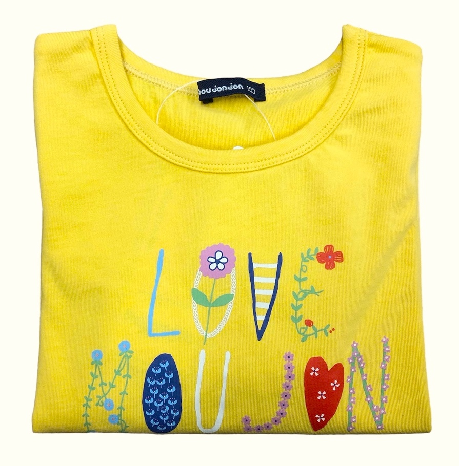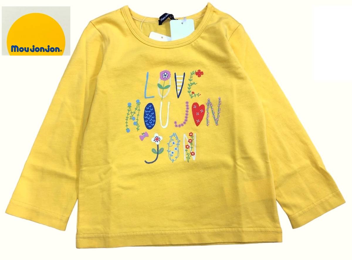 お手頃プライス 即決★新品タグ付 Moujonjon ムージョン★ラブリィな花ロゴ柄 天竺 長袖Tシャツ★良質素材★140cm 11-12才 ¥1430