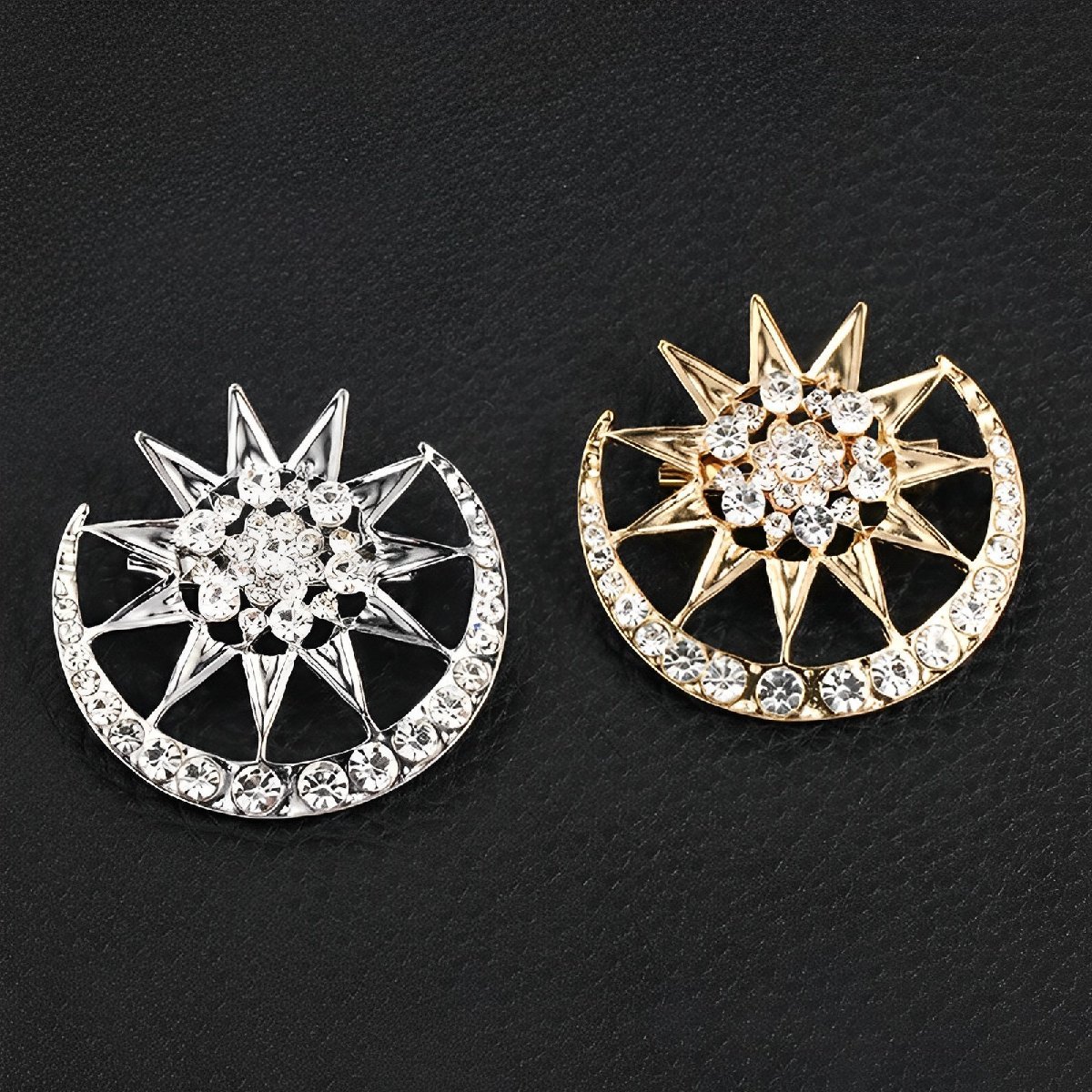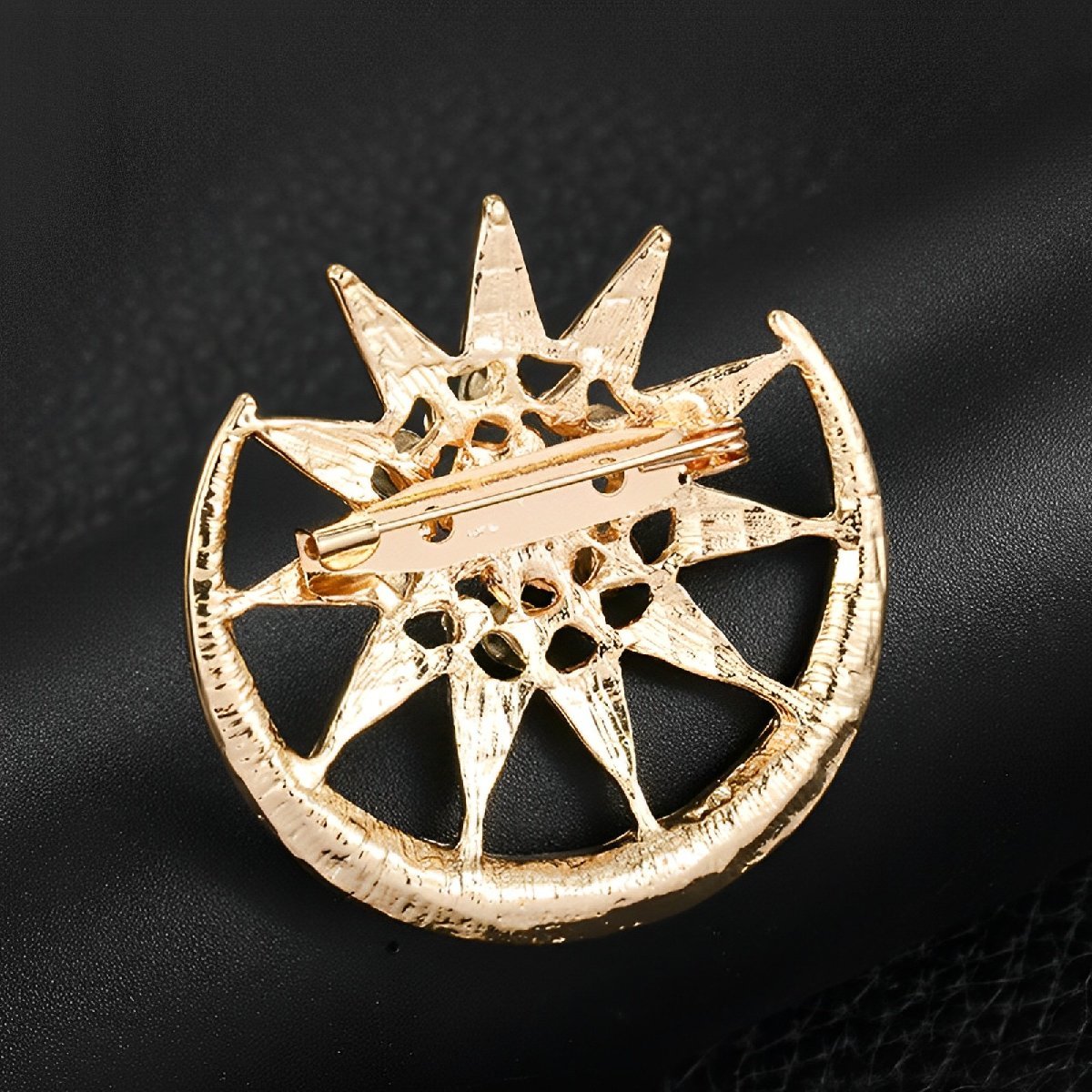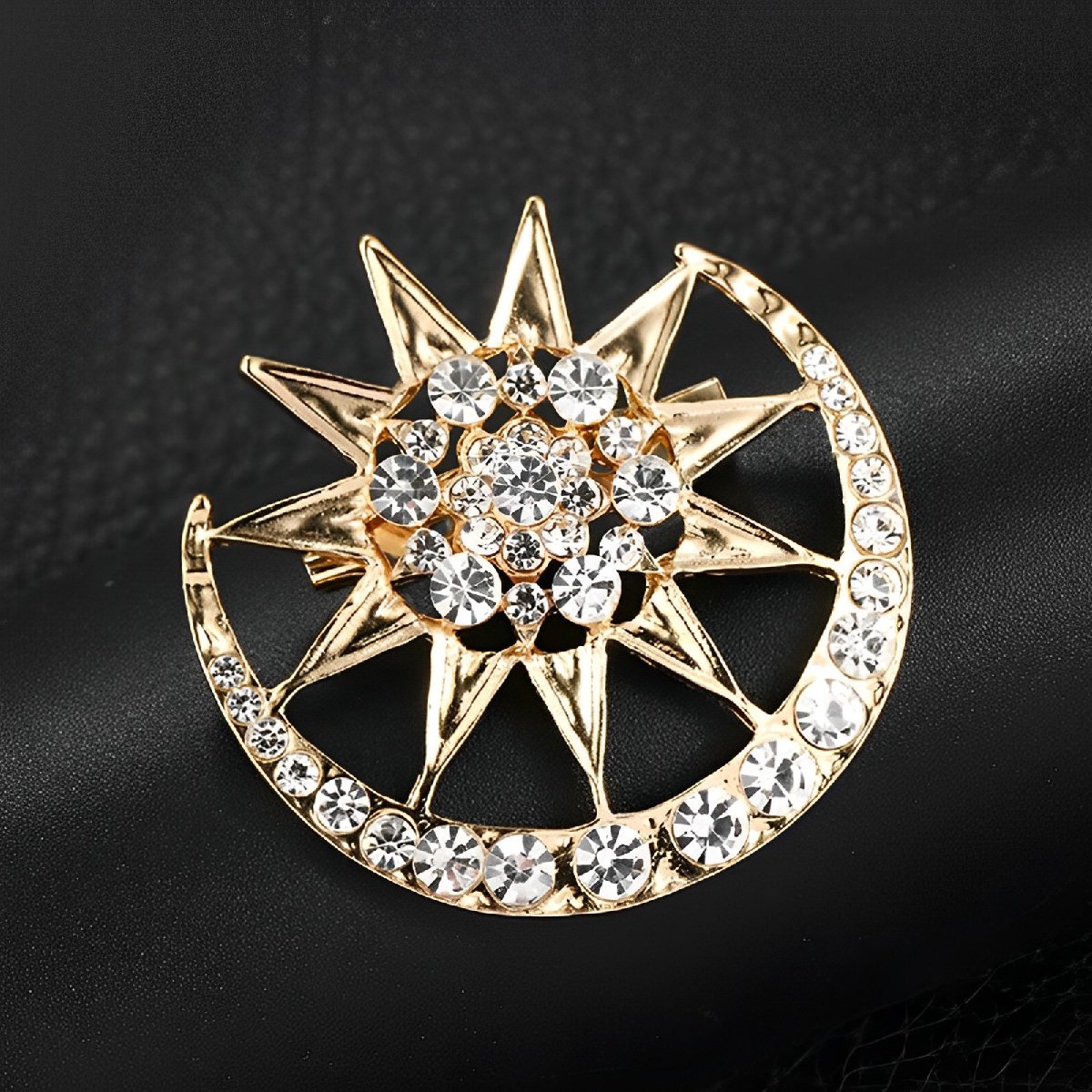 高級 キラキラ 月と星の伝説 デザイン ブローチ/ゴールド