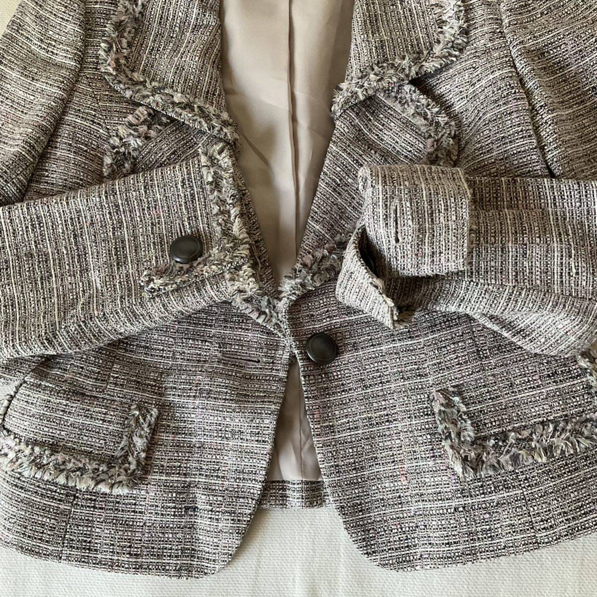 サイズ:上下表記9 実寸【ジャケット】肩幅38 身幅46 着丈49,5 ウエスト40 袖丈60【スカート】ウエスト35 丈50,5