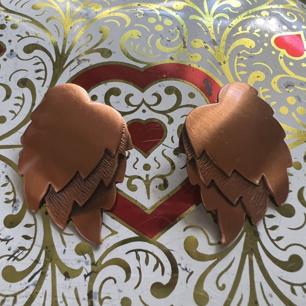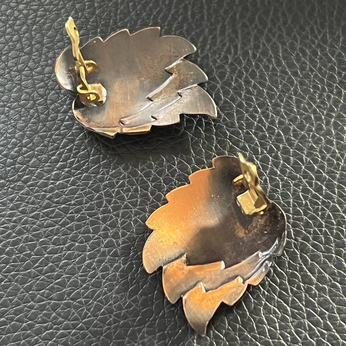 ビンテージ カッパー銅 リーフモチーフのイヤリング