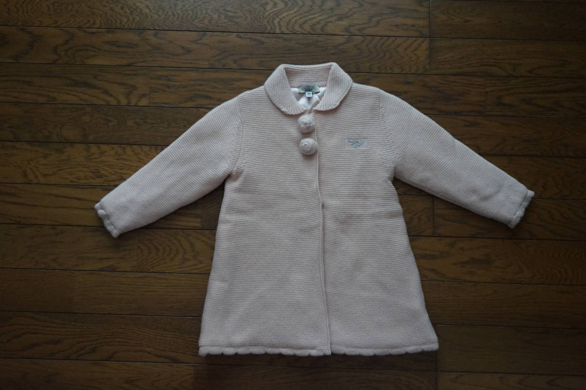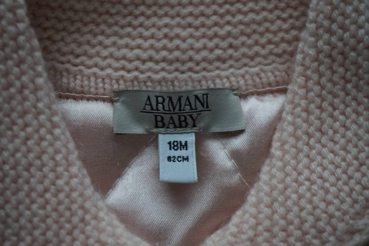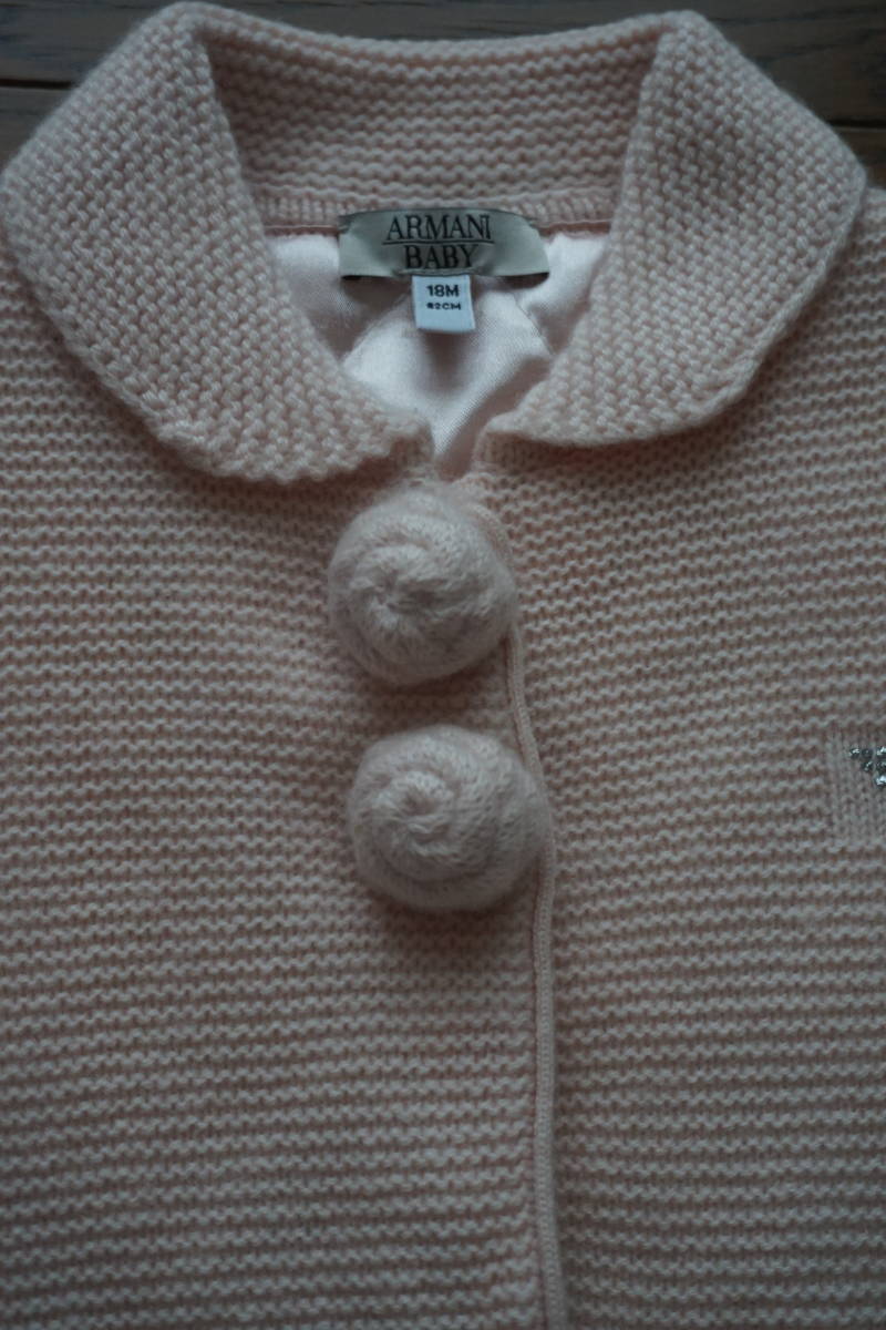 *◇ ARMANI BABY アルマーニ ◇ ウール ニット コート ジャケット ◇ size 18M / 82CM  です。8枚目の写真にありますように、汚れがあります。  写真より少し濃いベビーピンク色になります。  毛羽立ちが多少あります。
