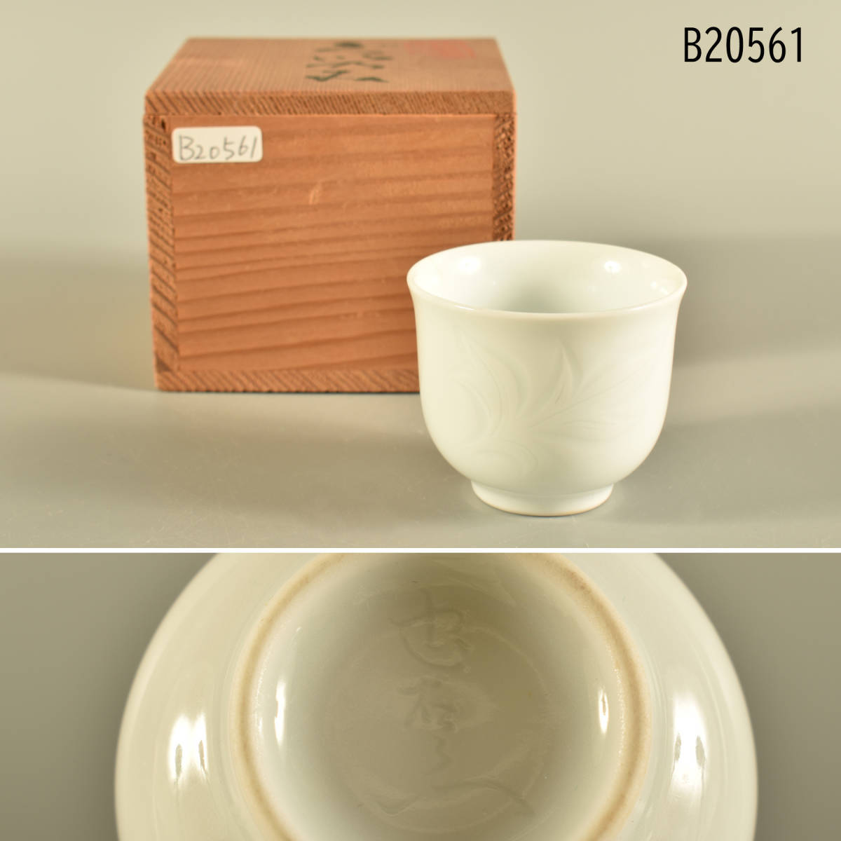 B20561 奥川忠右衛門 白磁彫 ぐい呑
