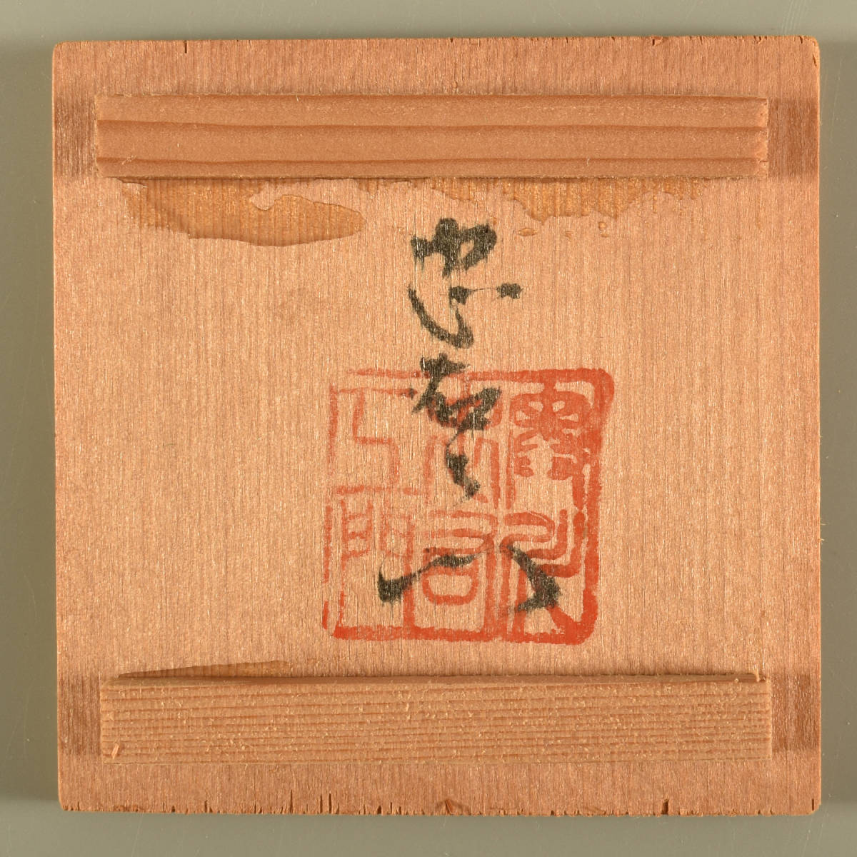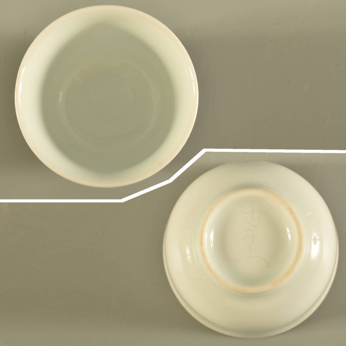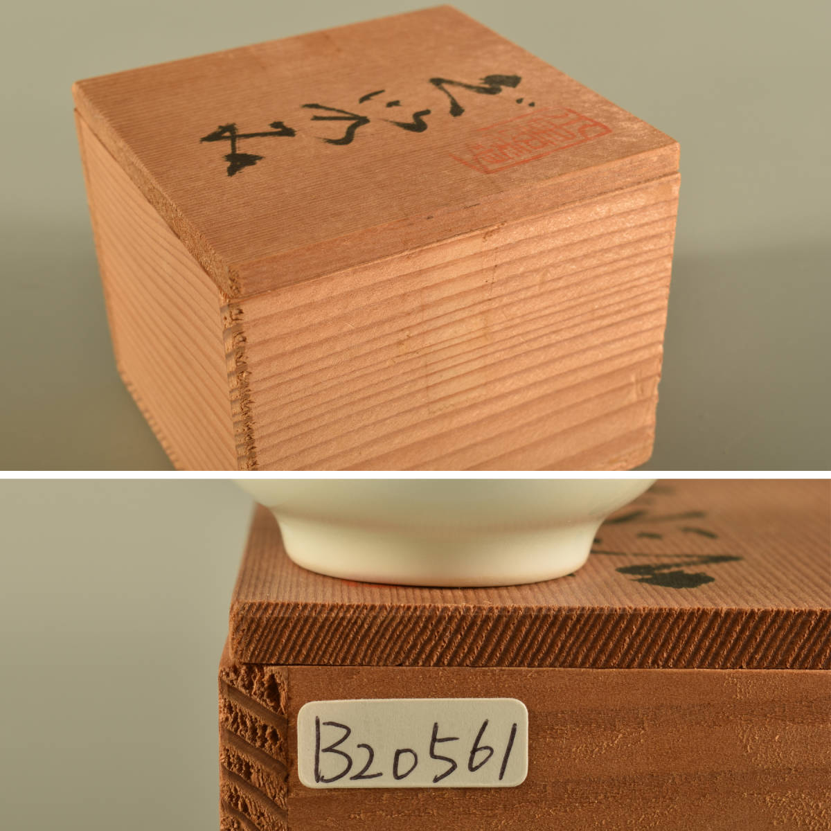 状態:口縁に小さいヒビ1ヶ所。底に銘あり。箱焼けシミあり。