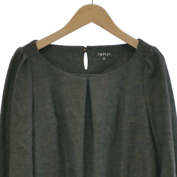 インディヴィ INDIVI チュニック ワンピース 七分袖 ひざ丈 36 グレー /AG レディース