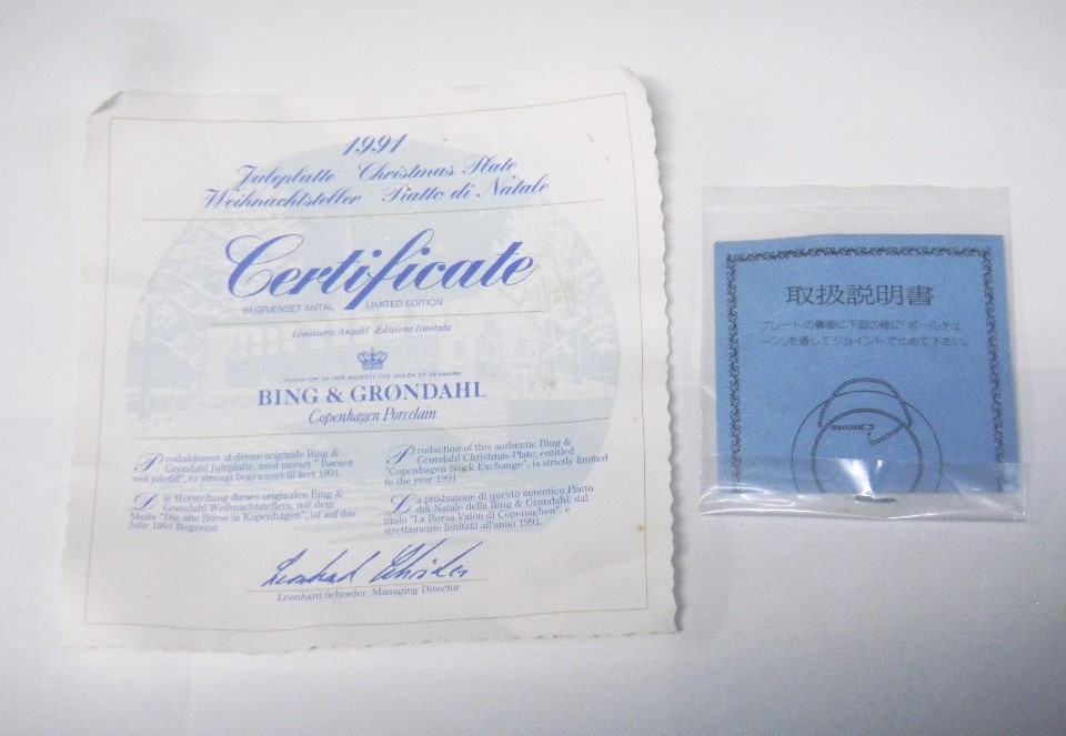 B&G ビング・オー・グレンダール イヤープレート 1991 18cm 【品番】不明 【参考価格】不明 【製造月】不明 【サイズ】18cm、質量:約334.5g 【付属品】画像に写っている物のみです。 【状態】高台に少々汚れがあります。箱、証明書、取扱説明書は汚れ、シミがあり程度は悪いです。置台はありません。 なお、画像と実物の色やサイズは、やや異なる場合があり、写りこみもあります。 【コメント】 知識がありませんので専門的な質問の場合は、詳しくどこを確認するかをおしえていただければ、 何とか回答いたします。よろしくお願いいたします。 説明不足があると思いますが、詳細をよく読んで、 ご理解、ご了承していただいた上での、ご入札をお願いいたします。 【ゆうパック料金表】