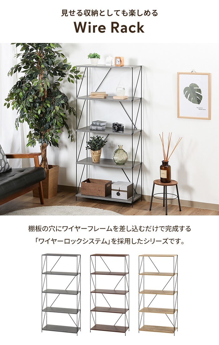 | ワイヤーラック ディスプレイラック 5段 幅60 ラック オープン収納 シェルフ 小物収納 木製棚板 北欧風 見せる収納 シンプル オープンラック フリーラック 収納棚 本棚 おしゃれ 飾り棚 ナチュラル スチールラック |