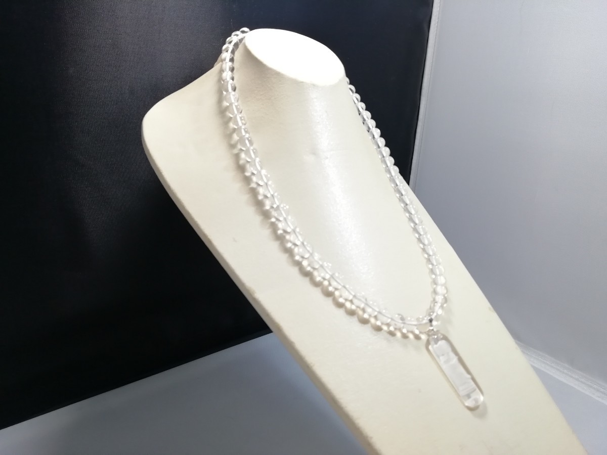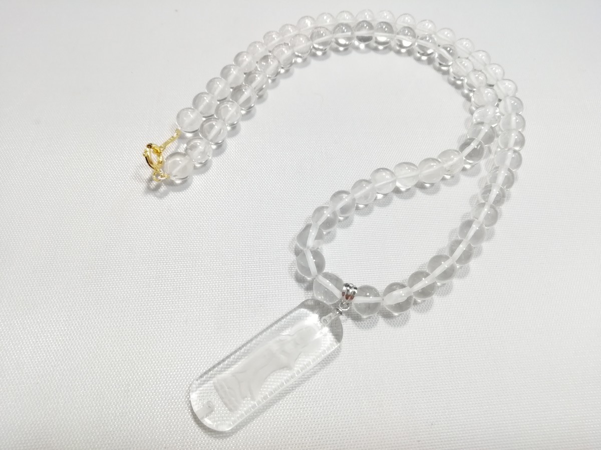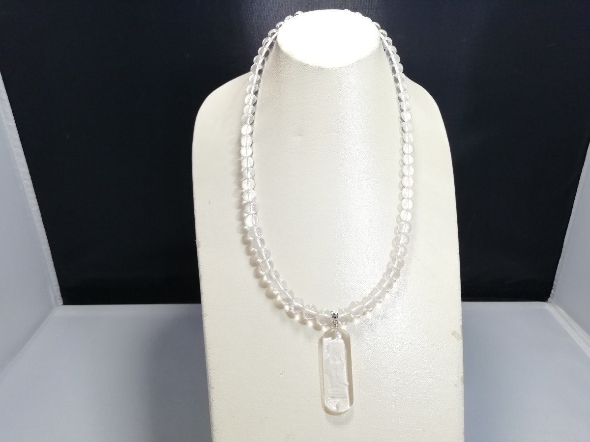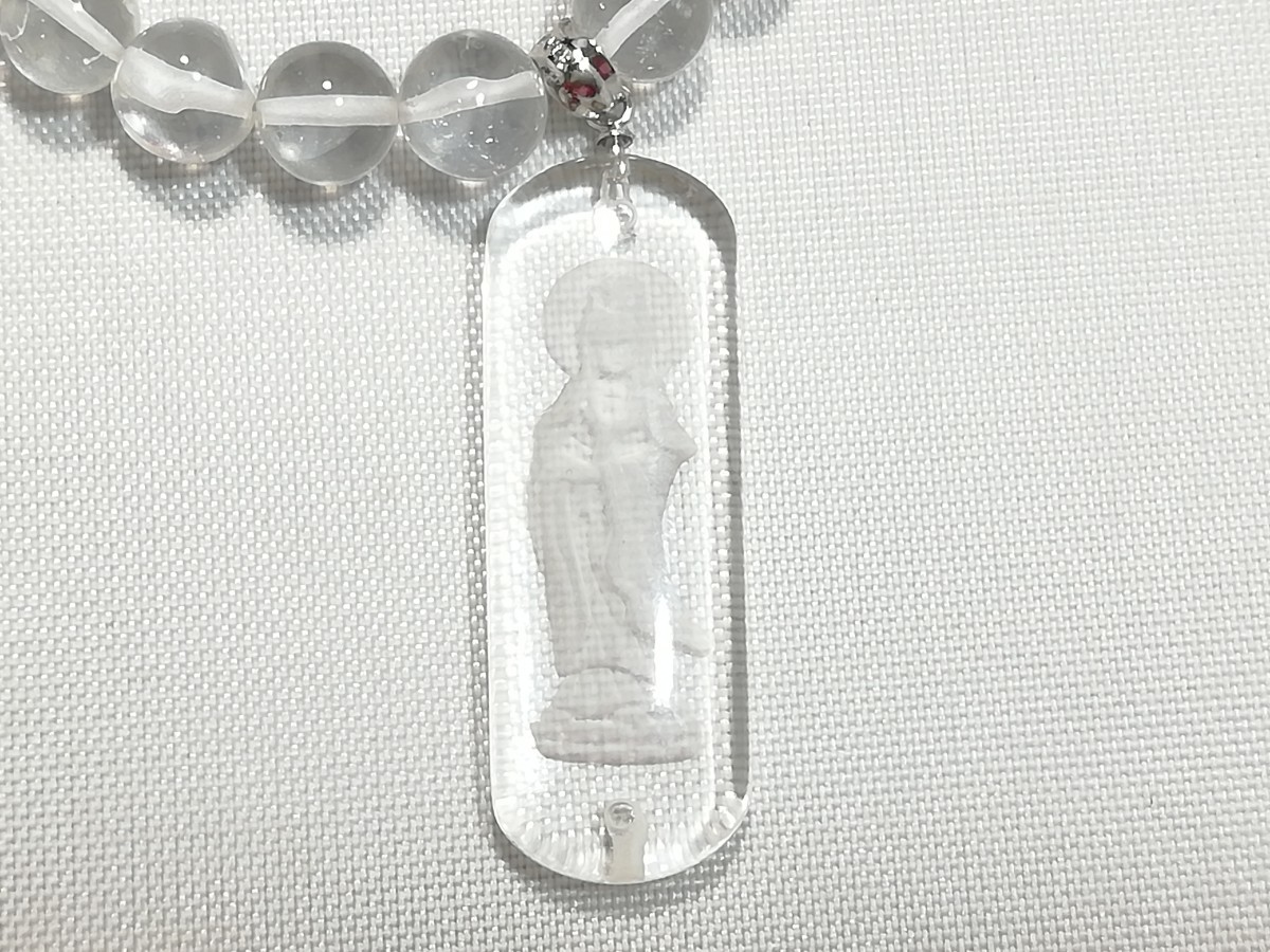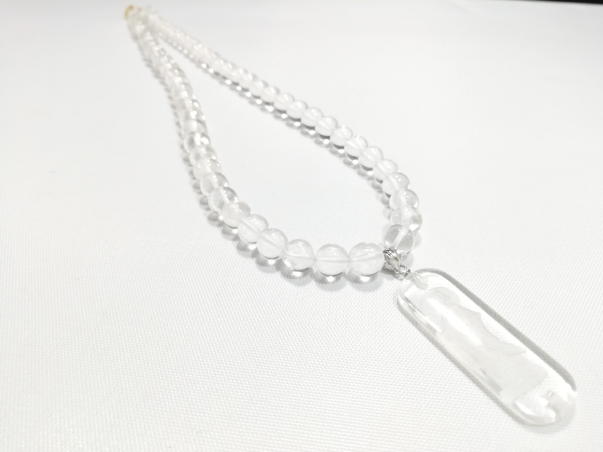 天然丸玉水晶&観音さまお守りペンダントネックレス