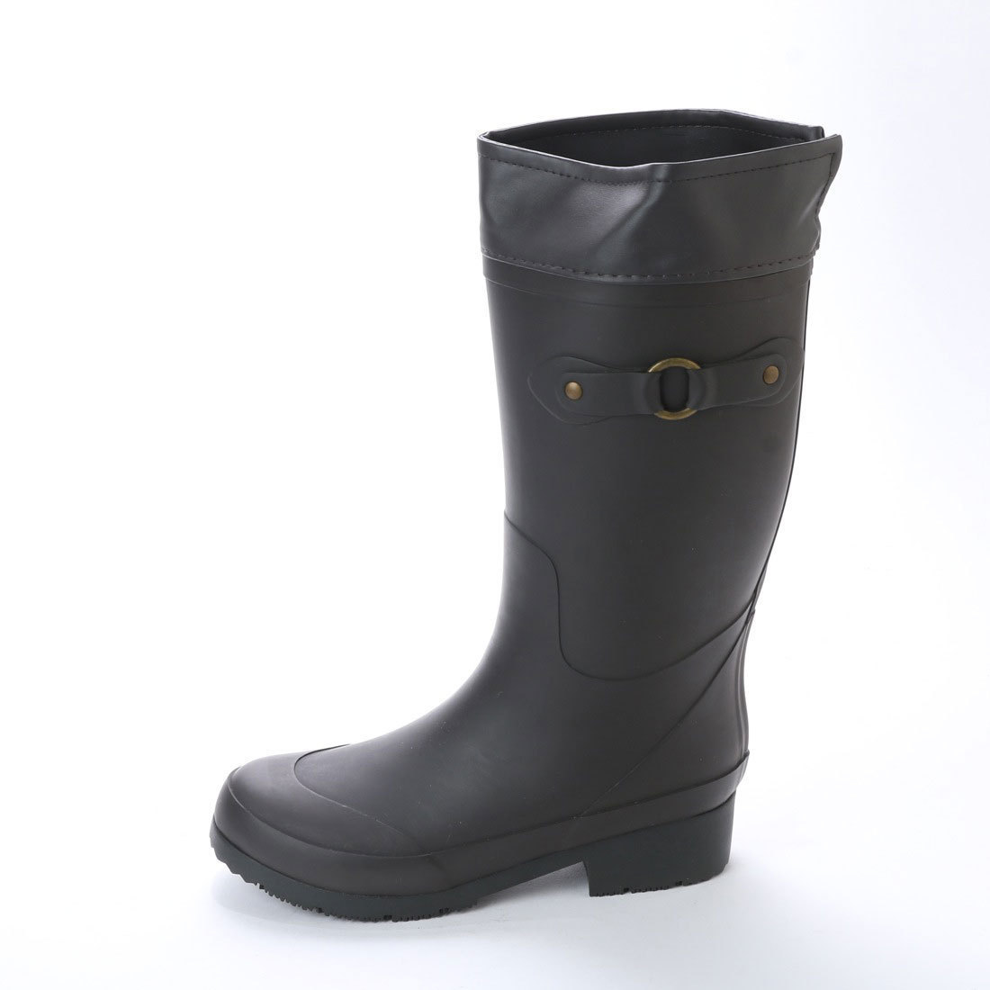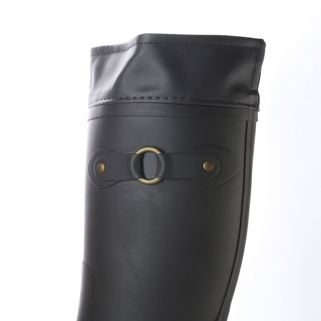 金属飾りがポイントの 完全防水 ロング丈 防寒 レインブーツ。