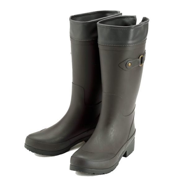 16032 アウトレット レディース レインブーツ Sサイズ (22.0-22.5cm) ブラウン ラバー ロング ライニング 保温ウレタン裏地 婦人靴 ②