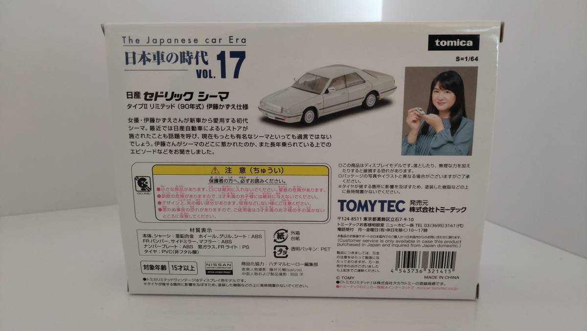 | <新品・未開封> トミカリミテッドヴィンテージネオ 日本車の時代VOL.17 日産 セドリックシーマ タイプⅡリミテッド(90年式) 伊藤かずえ仕様 1/64サイズ | ||||||||||||||||||||