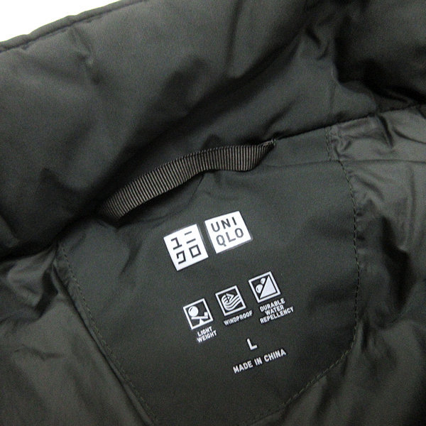 s■ユニクロ/UNIQLO シームレスダウンコート JKT 409332【L】カーキ 緑系/MENS/9【中古】