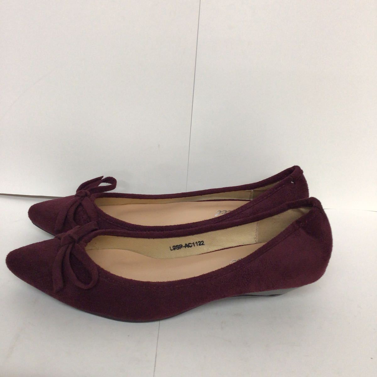 【売り切り!送料無料!】A-331 Le;ciel!パンプス!ぺたんこ!L!24cm!24.5cm!ワインレッド!赤!おしゃれ!リボン!かわいい!未使用