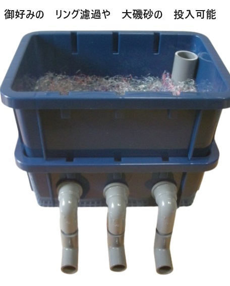 2段目 リング濾過材や 大磯砂などの 濾過砂 投入可能