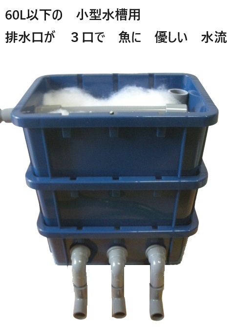 魚に 優しい 水流 ネイビーブルーの オシャレな 3段濾過槽 タワータイプ ウール ホース付き  2