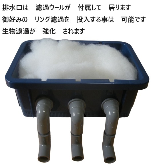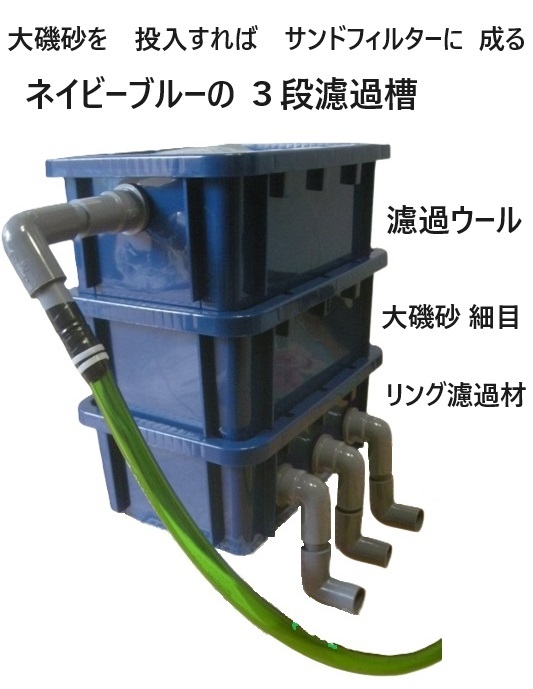 3段濾過槽に 換える事に 因り 物理濾過や 生物濾過を 行い 水質は 安定 致します。