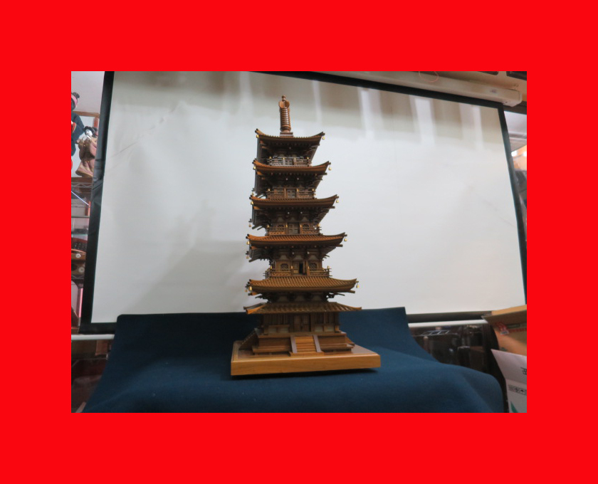 「五重塔置物G-183」仏像・仏具・幽霊画〝佛〟 木製品細部にこだわった作りです。存在感あります。 2段に分割できます。 幅42cm高さ100cm奥行42cm (詳しくは写真にてご確認の上ご判断下さい) |