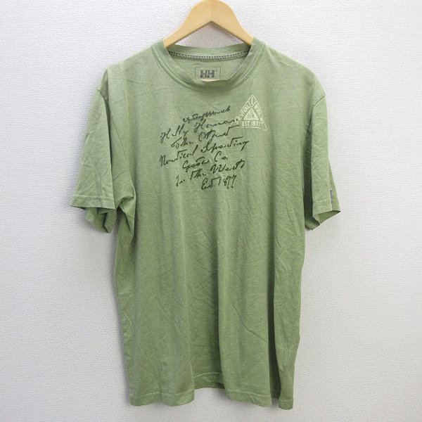 z■ヘリーハンセン/HELLYHANSEN 刺繍デザインTシャツ【XL】緑系/men's/143【中古】■