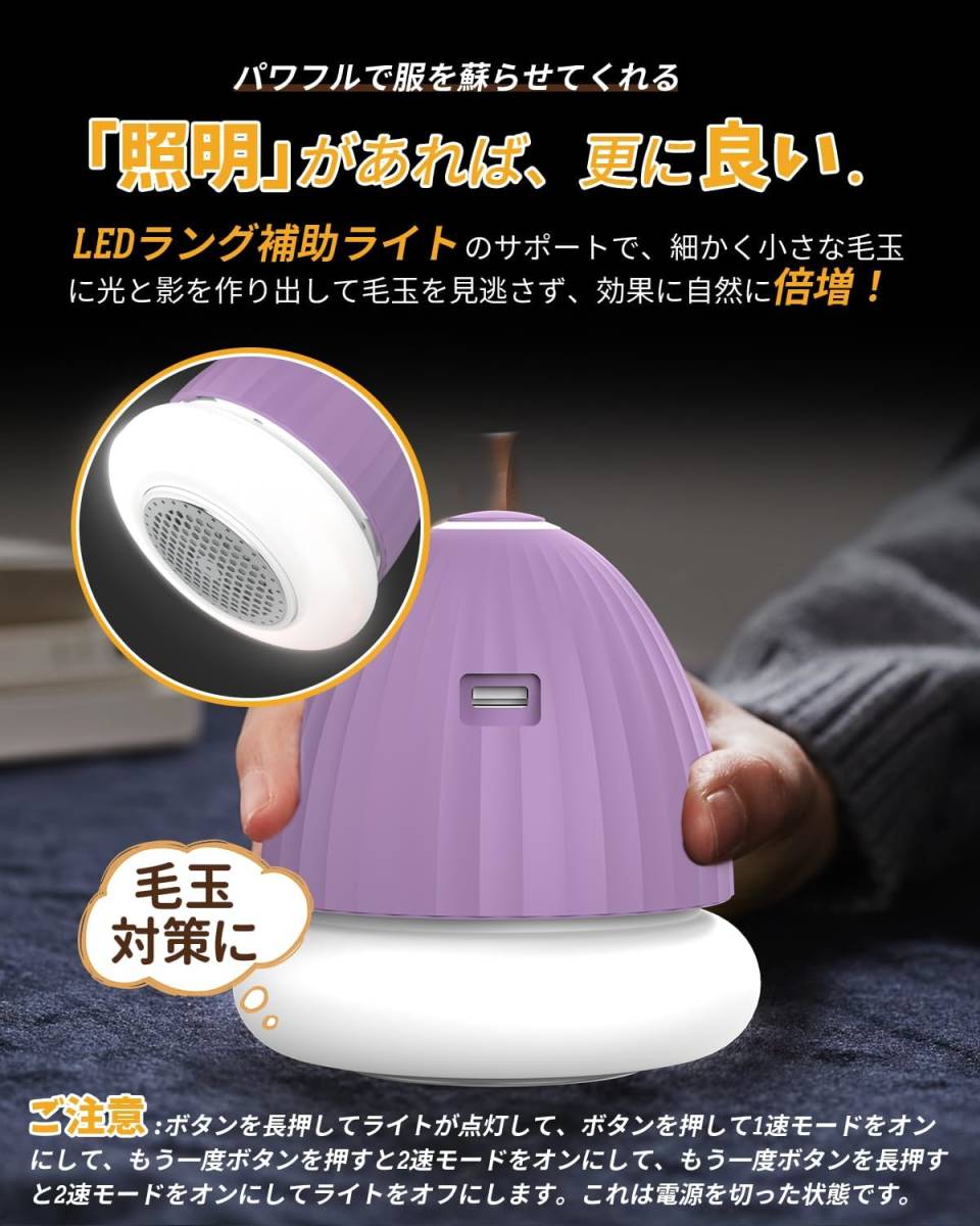 最新鋭アップグレード版として業界で登場しました!超軽量、超小型のデザインので、まさにどこでもいつでもお手軽にお使いできる電動毛玉取り機です。業界でLED付属の独特なデザインで、暗い場所でも使用でき、より使いやすいようになっています。
