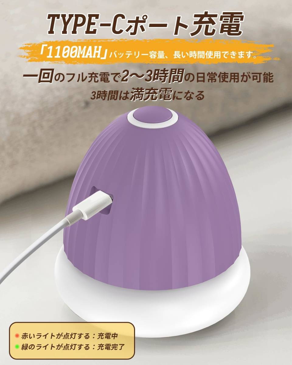回転スピードが11000RPMほど高いので、セーターなどを直ぐに綺麗になさせるよう短い短時間に処理できます。コンパクトなので持ち運びしやすい。