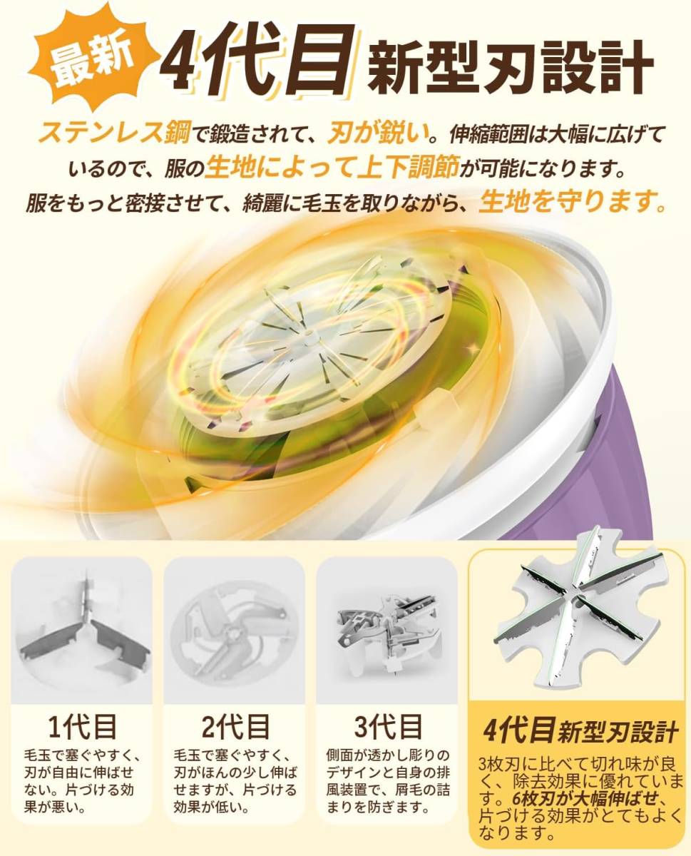 強力ステンレス6枚刃で、毛玉の長さによって、フロート内刃で生地を傷めずに自動的に毛玉をカットできます。LEDリングライトが搭載されており、毛玉がより鮮明に見えるので、小さな毛玉でも逃しません。