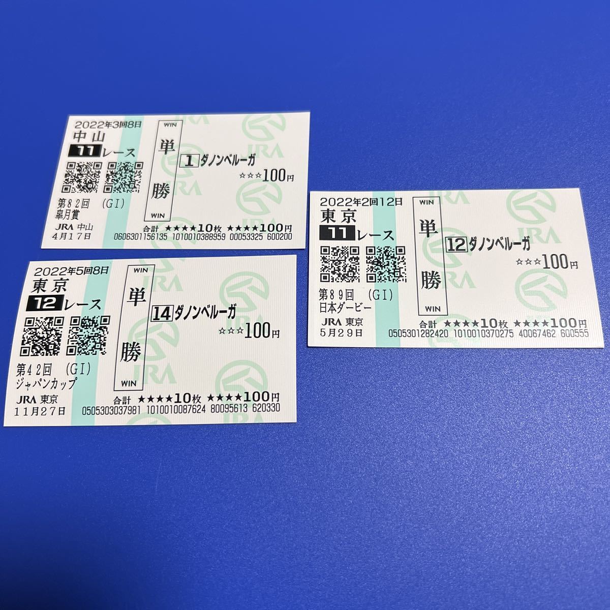ダノンベルーガ 22年皐月賞 日本ダービー ジャパンカップ 現地単勝馬券セット 数量9