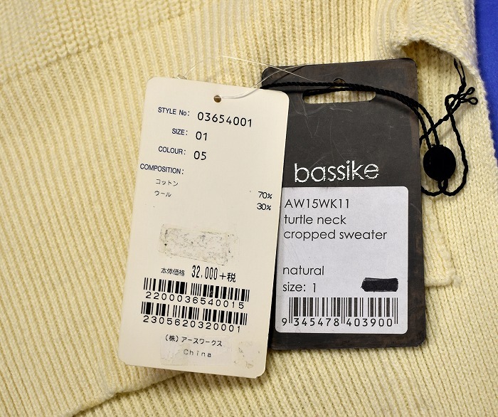「bassike (ベイシーク)」の Turtle Neck Cropped Sweater タートルネック クロップド セーター KNIT ニット NATURAL 1 スリット ラグラン COTTON WOOL です。