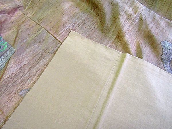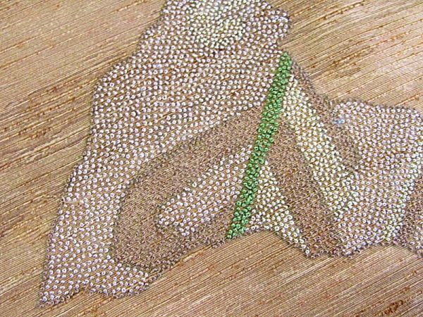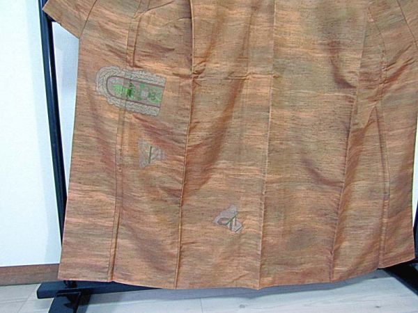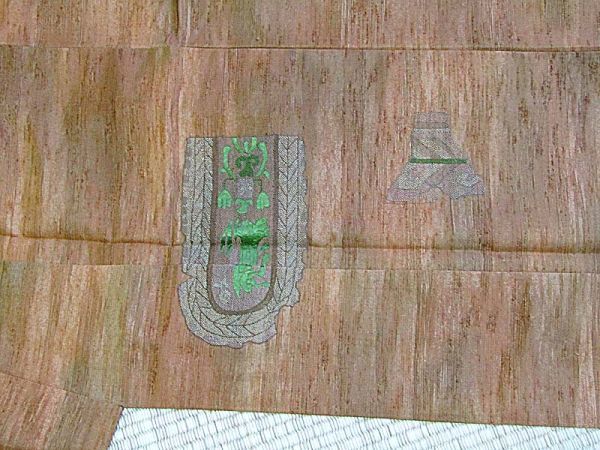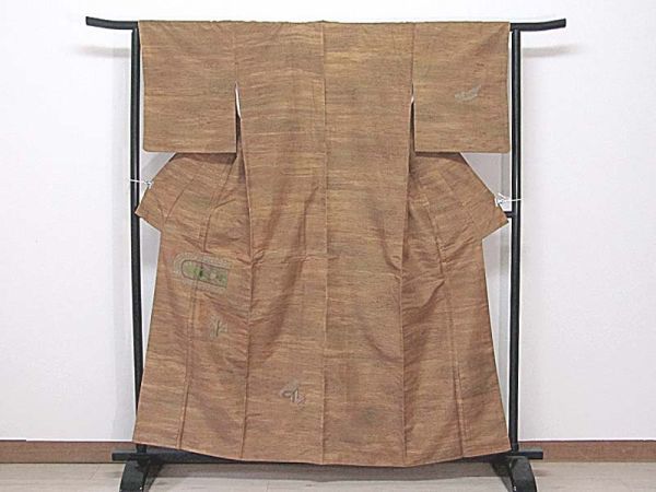 金茶系?西陣織紬に細かい相良刺繍の附下きものです。