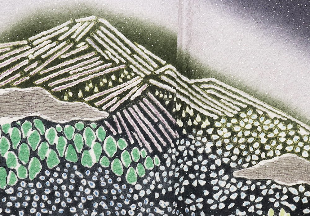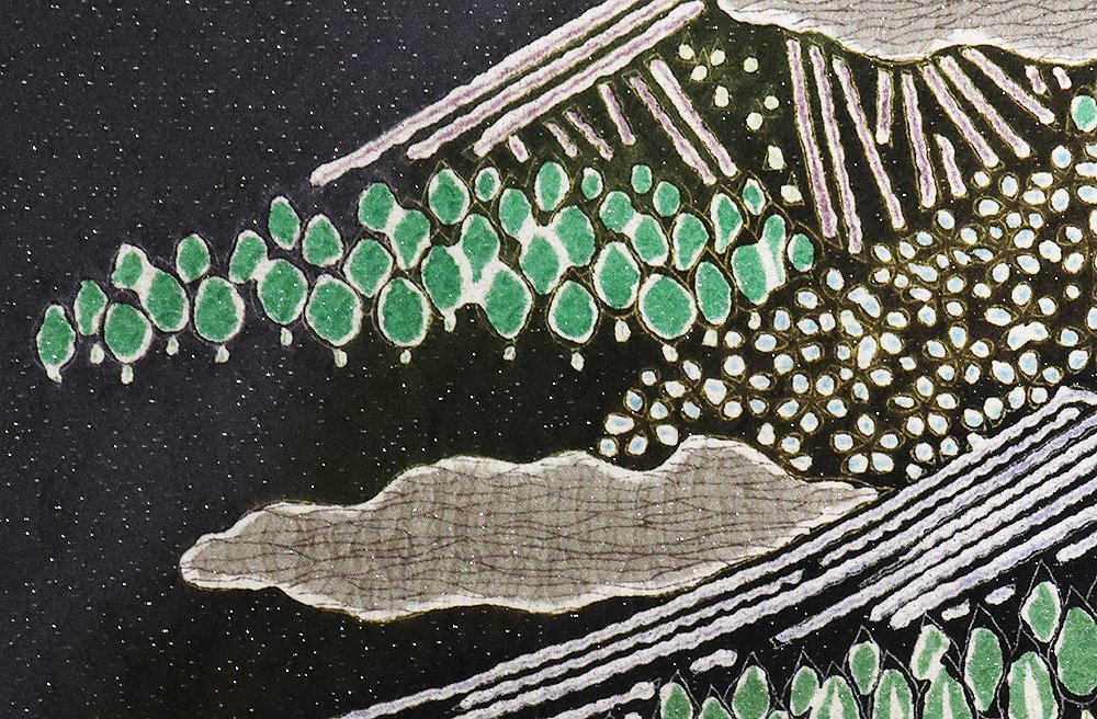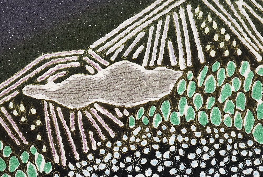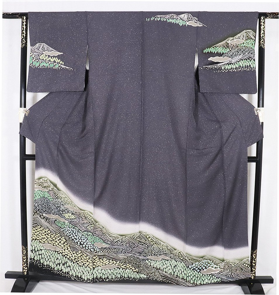 おぼろ絞り 訪問着 袷 丹後縮緬地 グレー暈し地 銀糸通し地 おぼろ絞り・遠山・桜・北山杉 (写真では上手く色が出ない場合があります。ご了承下さい) |