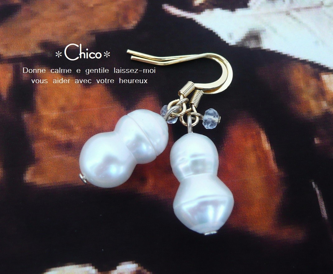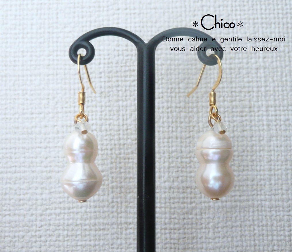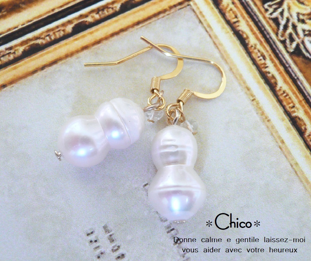 ◆ビーズ… 淡水パール  ホワイトツイン・雪だるま 約14mm