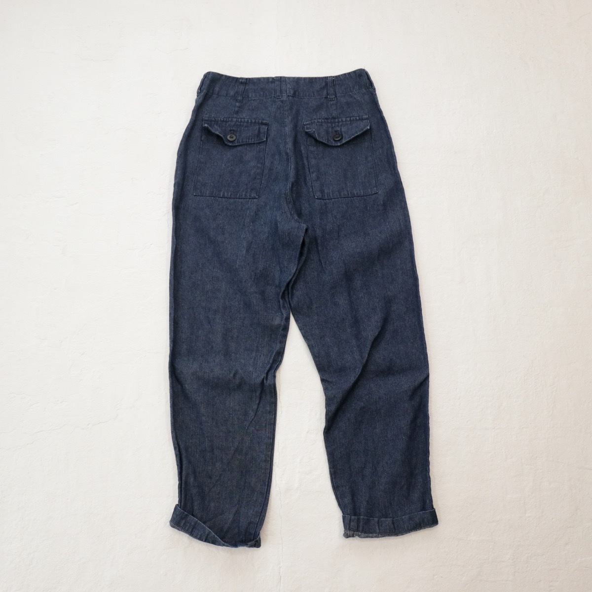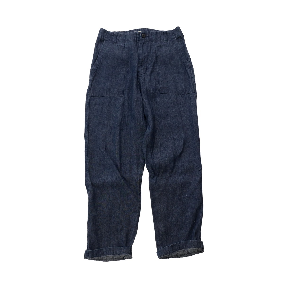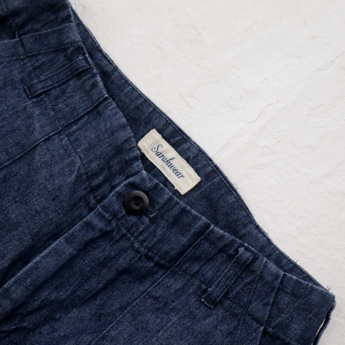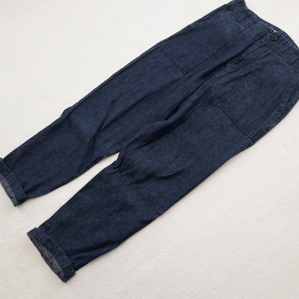 <即決 送料無料> sarah wear サラウェア|柔らかリネン デニム ベイカーパンツ|サイズ1|インディゴ
