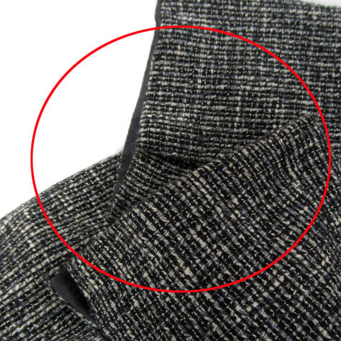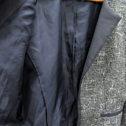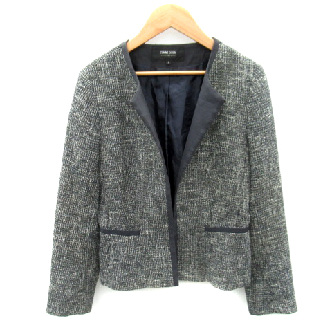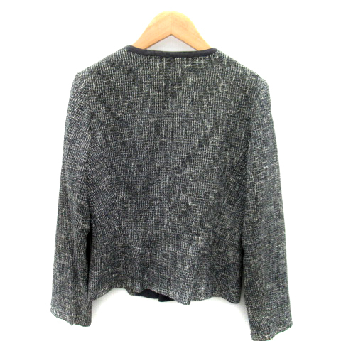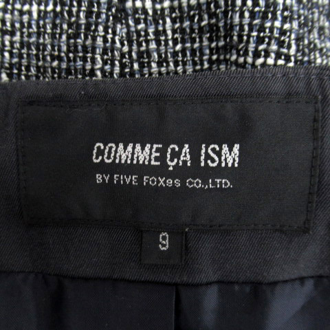 コムサイズム COMME CA ISM ノーカラージャケット ミドル丈 ツイード 9 黒 ブラック 白 /SY30 ■MO レディース
