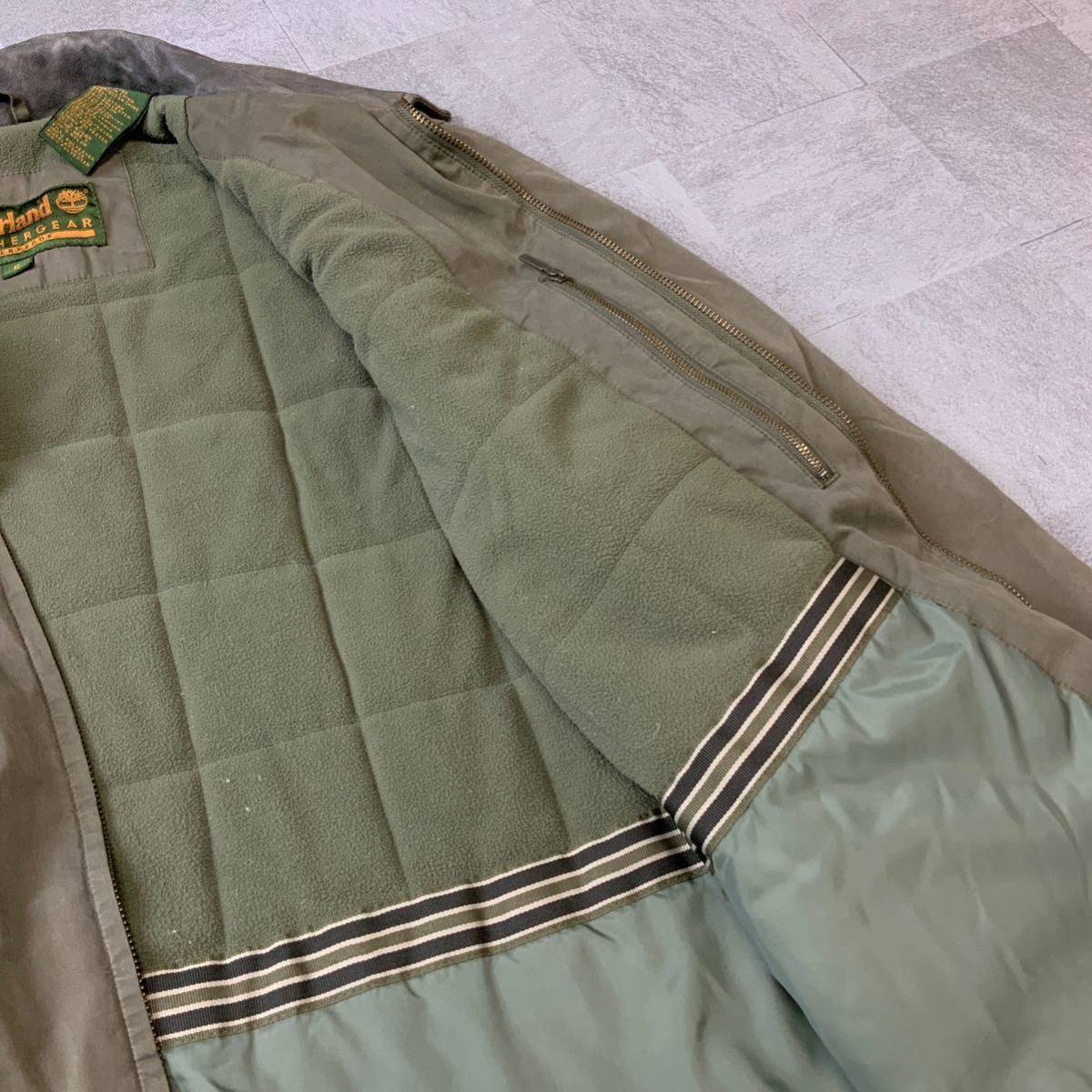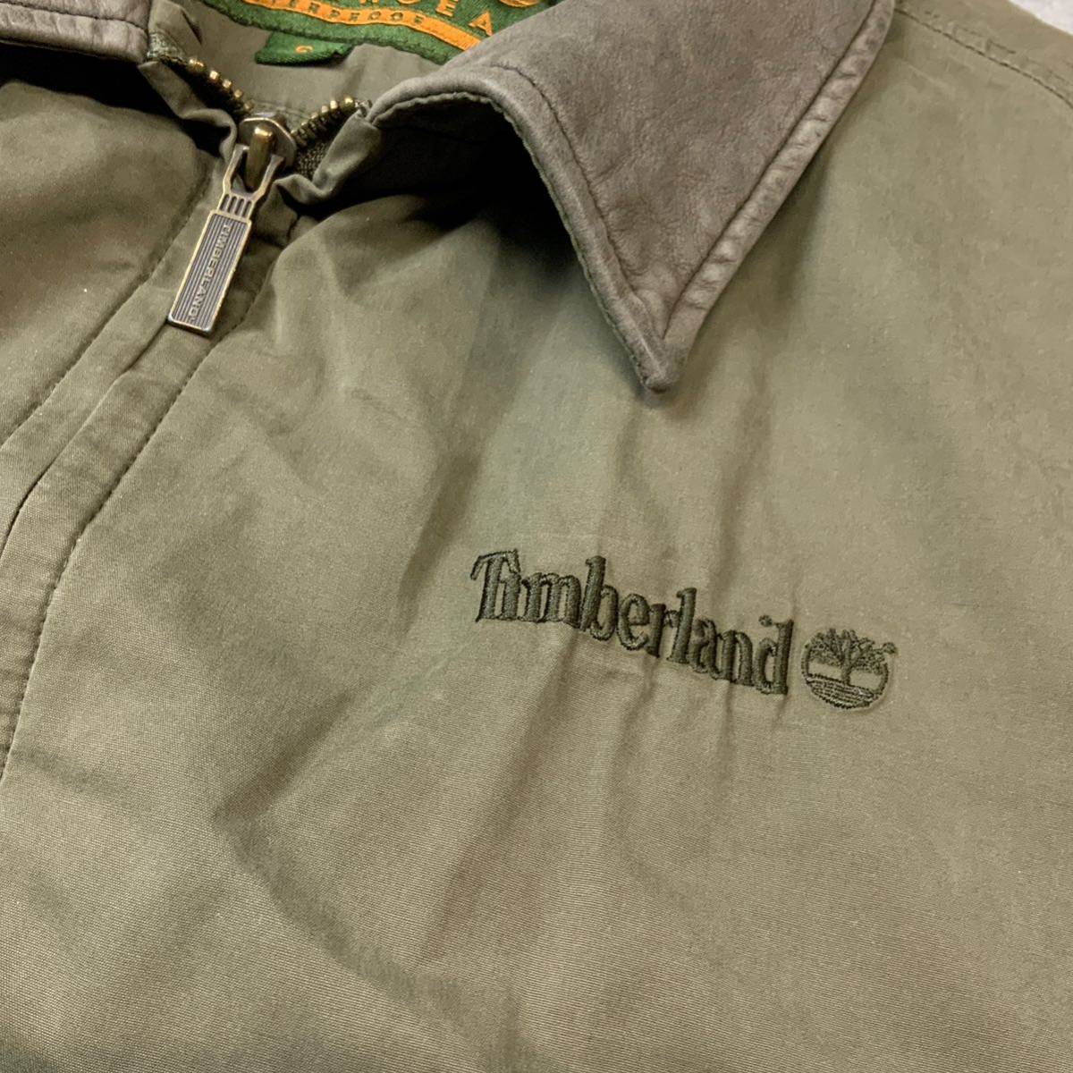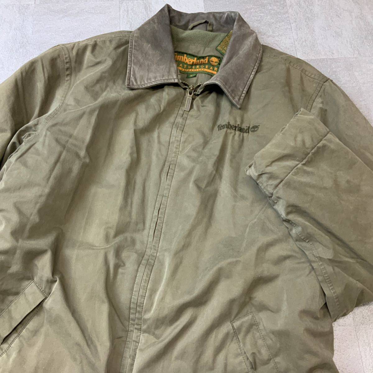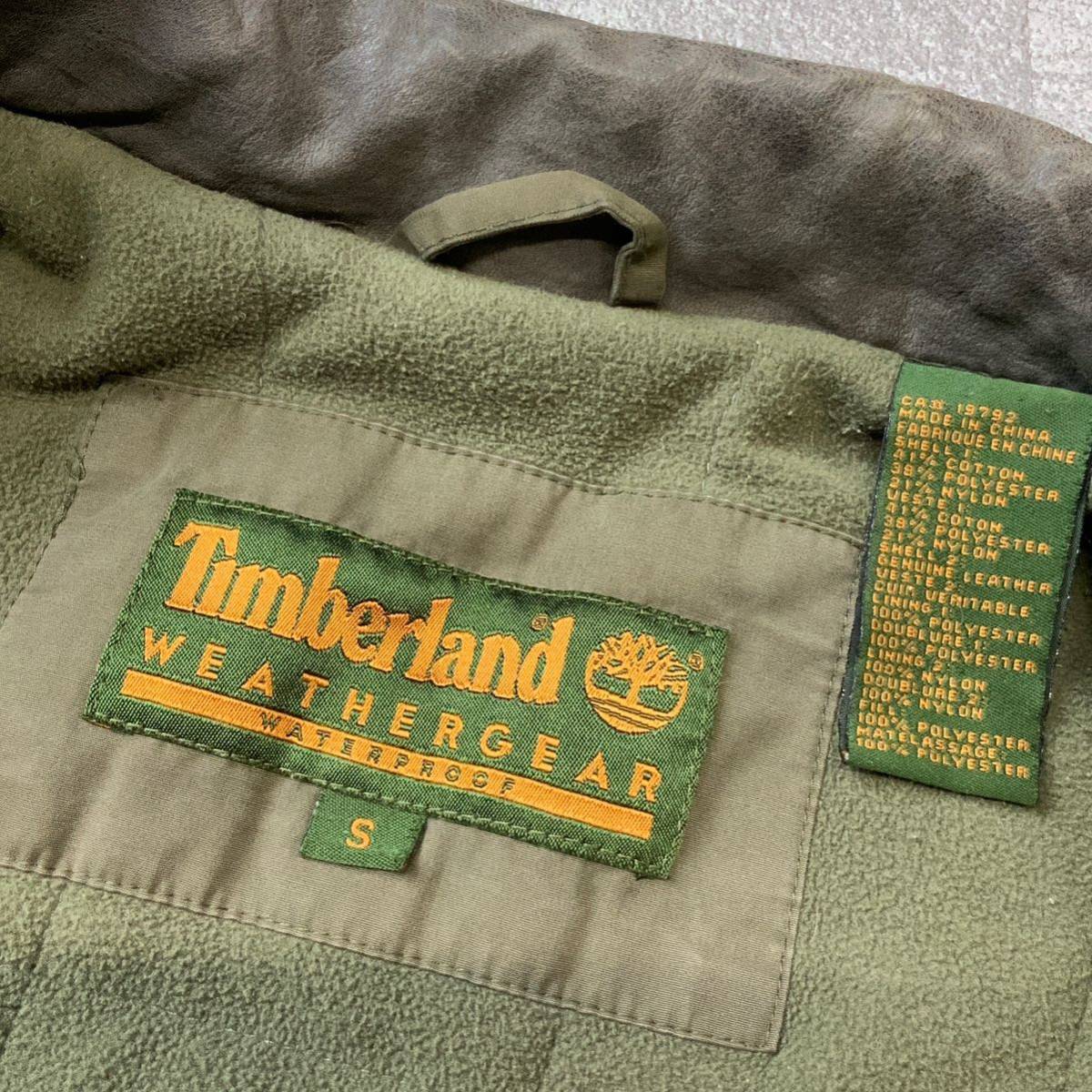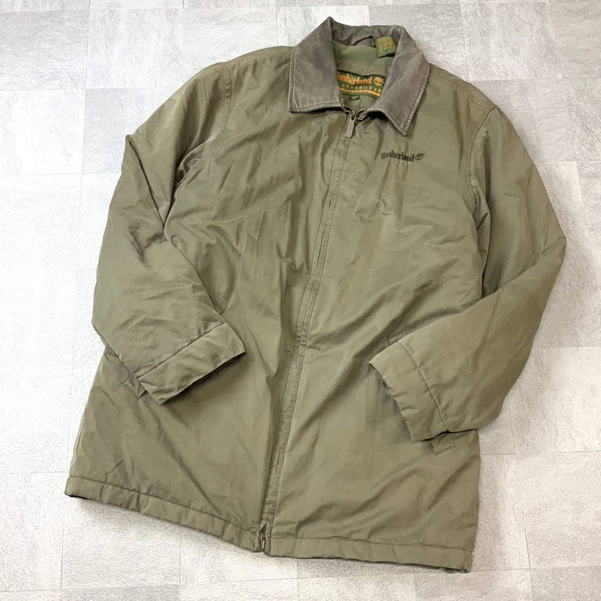 Timber land ティンバーランド 襟本革 レザーカラー ランチコート ミリタリージャケット メンズ Sサイズ カーキ