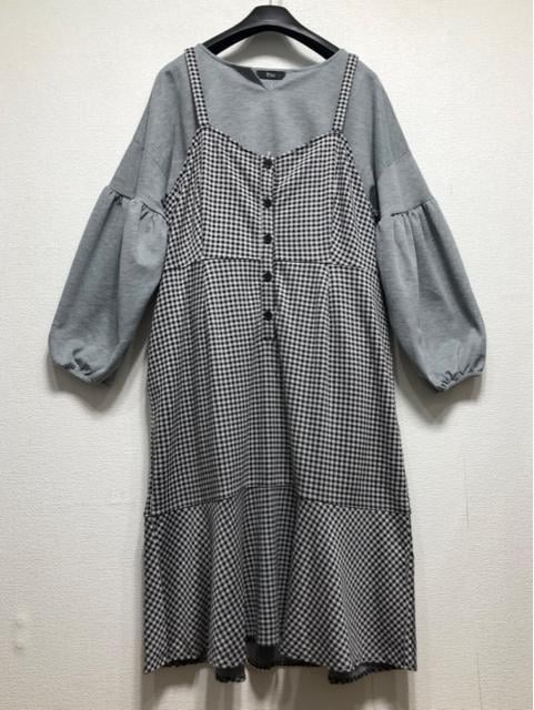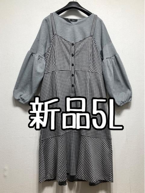 新品☆5L♪グレー系ゆったりプルオーバー&チェック柄キャミワンピ☆z224