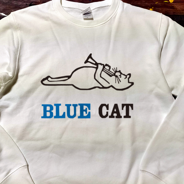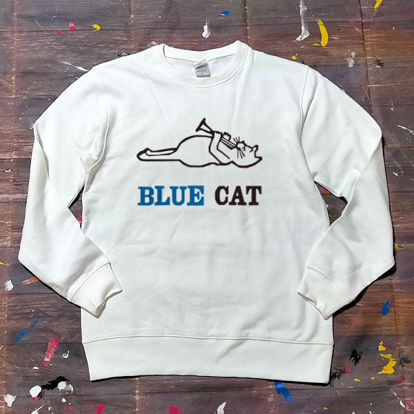 送料無料【Blue Cat Records 】猫のラッパ吹き/ 長袖トレーナー/ホワイト★選べる3サイズ/M L XL / 8.4オンス
